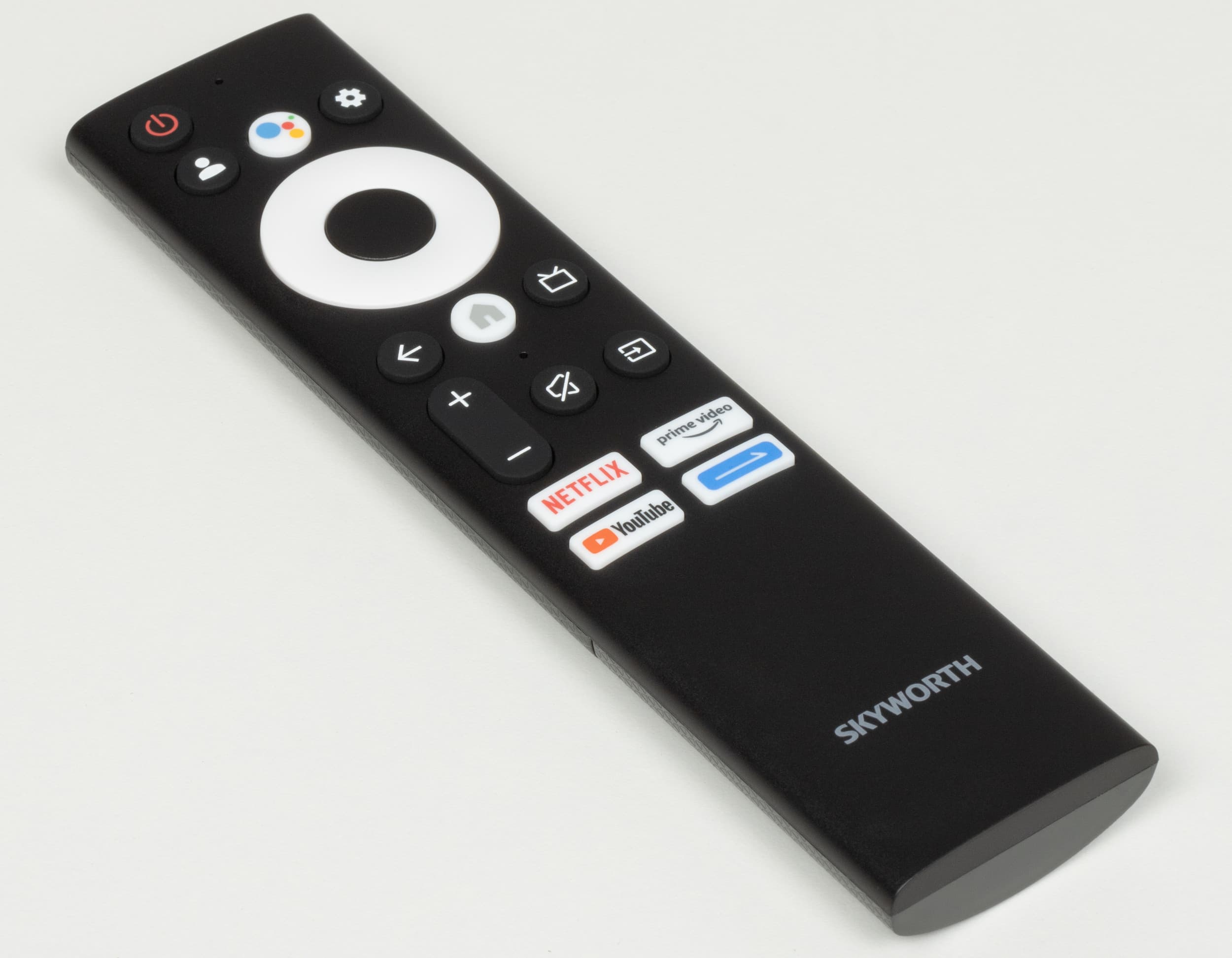 Основным элементом управления ТВ Skyworth выступает среднегабаритный пульт ДУ. Он изготовлен из черного пластика с матовой поверхностью. Кнопки разных цветов (преимущественно черные) изготовлены частично из жесткого пластика, частично из резиноподобного материала. Обозначения кнопок контрастные, основные кнопки достаточно крупные, как и надписи на них.