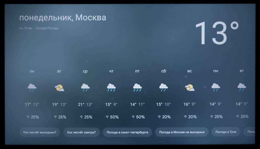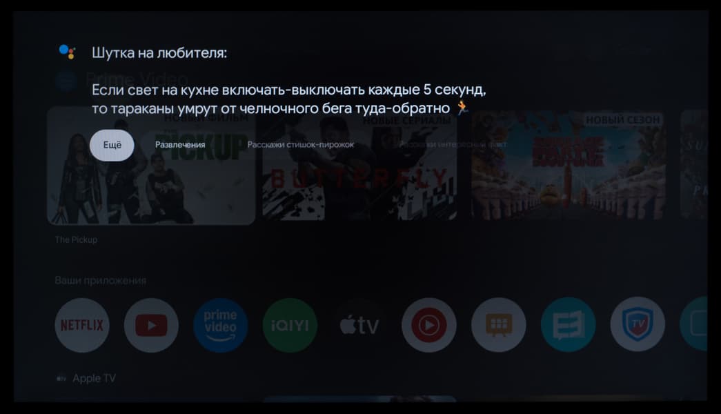 В ряде программ работает голосовой ввод текста. Также есть базовая интеграция с самим ТВ: например, голосом можно менять громкость, выключать/включать звук, открывать меню с настройками, выбирать нужный вход и запускать программу по ее названию (но лишь если вы правильно ее назовете, без излишнего акцента).