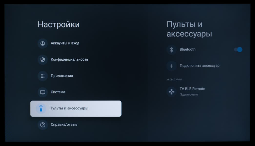 - Гибридный пульт ДУ работает по Bluetooth и по ИК