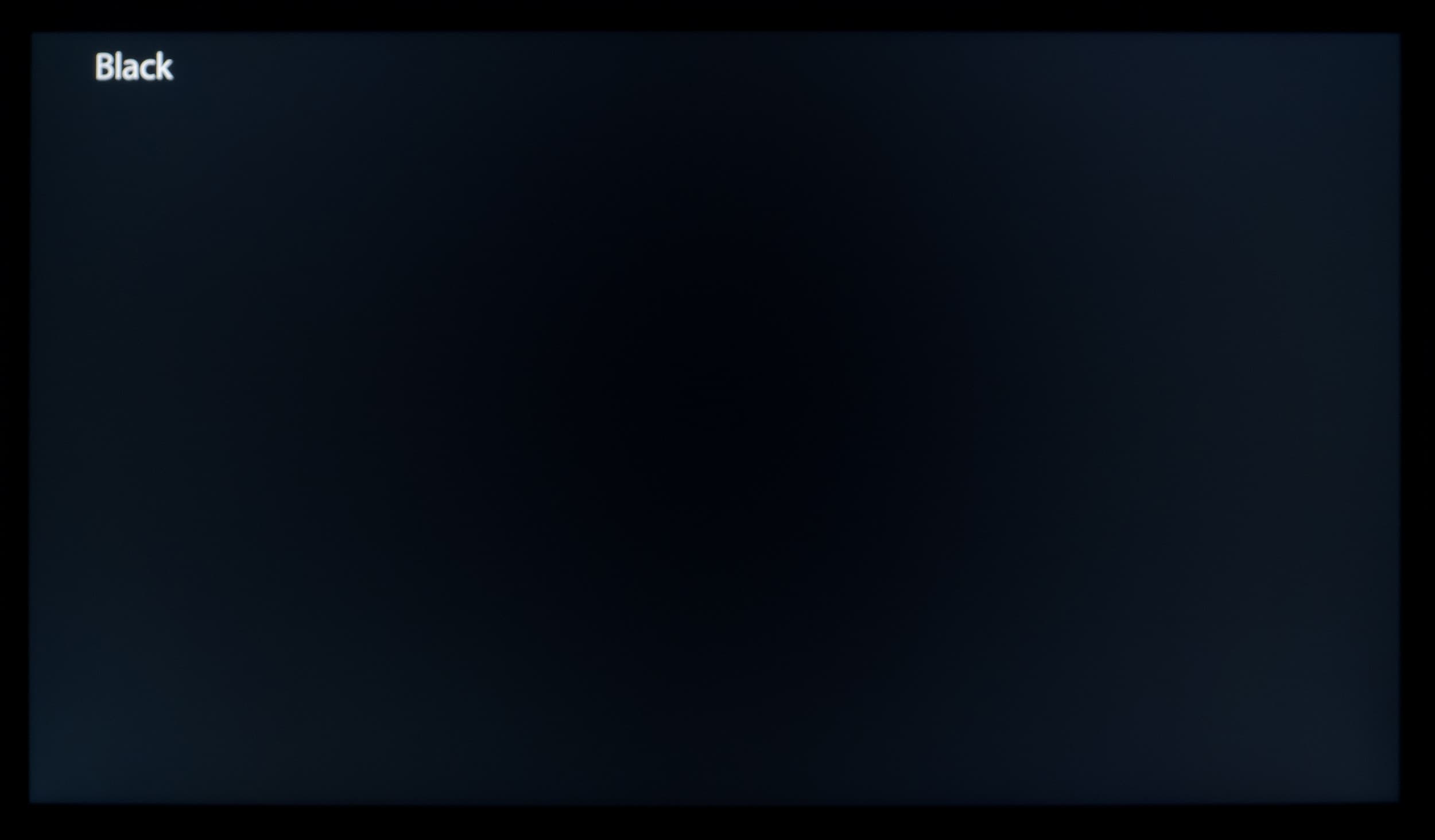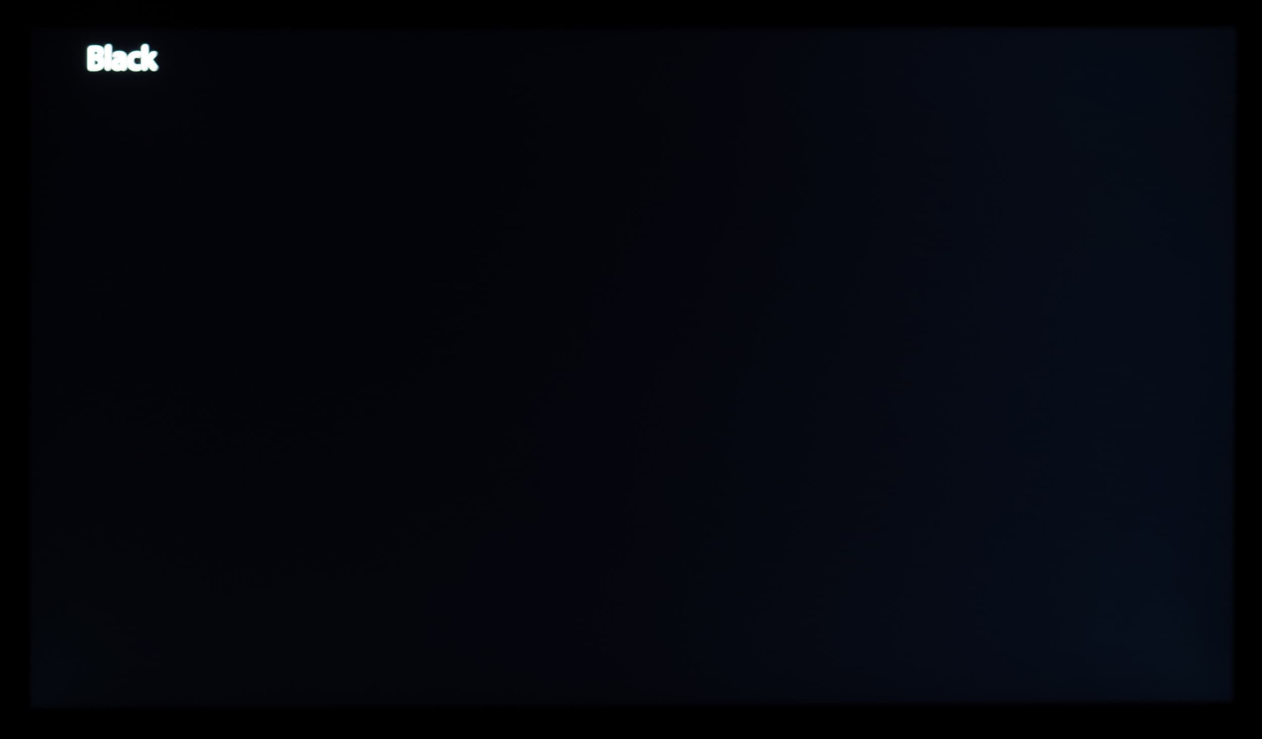 Наконец, при выводе черного поля равномерность подсветки оказалась очень хорошей, без визуально выраженных дефектов однородности по полю матрицы, что подтверждает фотография, сделанная с расстояния до экрана в 2 метра. Если же смотреть на черное поле гораздо ближе, то его визуальная яркость в разных частях экрана отличается — еще одна типичная особенность VA.