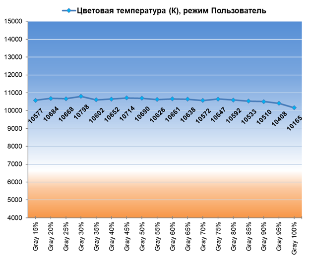В обоих случаях, несмотря на сильную разницу в настройках цветовой температуры, стабильность ЦТ по оттенкам серого — очень достойная — сильно лучше, чем демонстрируют многие телевизоры ценой в 2-3 и даже в 5 раз выше (да, случаются и такие огорчения).