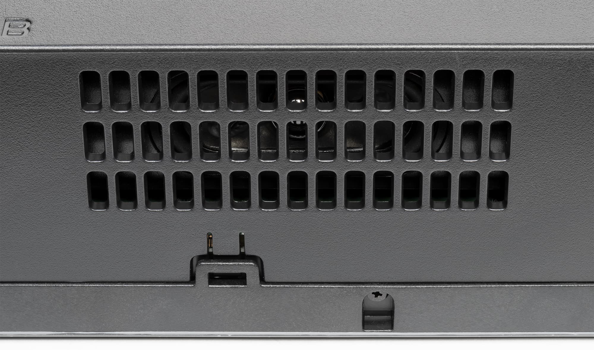 Воздух для охлаждения электроники проходит через решетки на нижнем торце корпуса и сзади.