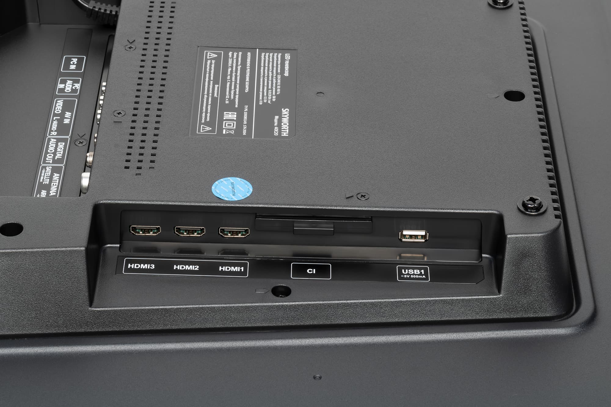 Skyworth 40E20 — это дешевый (судя по всему, на tmall.ru его можно купить за 11 тысяч рублей) телевизор с минимальными зачатками «умности», которые заключаются в том, что он в принципе может воспроизвести некоторые файлы мультимедийных форматов с USB-носителей. Но особо рассчитывать на это не стоит. В то же время, именно как телевизор он неплох: уверенный прием DVB-T2, высокая контрастность, достаточная яркость, близкий к sRGB охват и визуально не самый отвратный цветовой баланс, плюс современный условно безрамочный дизайн. К явным достоинствам отнесем отсутствие мерцания и хорошее качество изображения в случае подключения по VGA. Именно этот аналоговый интерфейс, а вовсе не HDMI, позволит использовать данный ТВ в качестве более-менее полноценного компьютерного монитора. К значимым недостаткам, с нашей точки зрения, можно причислить отсутствие выхода на наушники и вывод 2:3 для контента или сигнала 24 кадр/с.