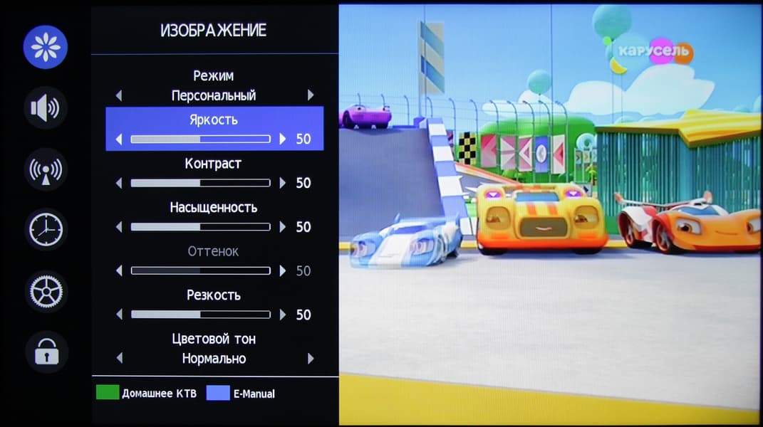 Работает ТВ под управлением собственной программной платформы, обладающей минимальным набором функций. Меню с настройками крупное, надписи в нем читаемые, навигация достаточно удобная и быстрая. Есть русифицированный вариант интерфейса. Качество перевода хорошее. При настройке изображения меню остается на экране, что мешает оценке вносимых корректировок.