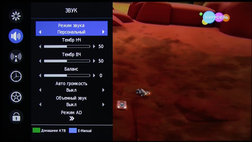 В этом ТВ есть какой-то режим Домашнее КТВ, который, скорее всего, позволяет петь караоке с подключенным микрофоном, но микрофон так не заработал, а найти примеры файлов, которые нужно воспроизводить в этом режиме, нам не удалось.
