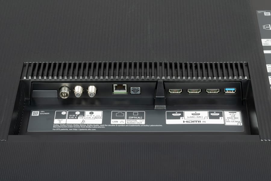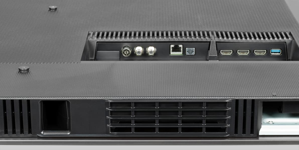 Большинство разъемов стандартные, полноразмерные и размещены более-менее свободно. Исключение — разъем для ввода композитного видеосигнала и стереозвука в аналоговом виде, который представляет собой гнездо для четырехконтактного миниджека. Соответствующего переходника на три RCA в комплекте поставки нет. В плюсы стоит записать целых четыре входа HDMI и три USB, один из которых даже версии 3.0 с максимальным током до 900 мА, предназначен этот порт для подключения внешнего жесткого диска.