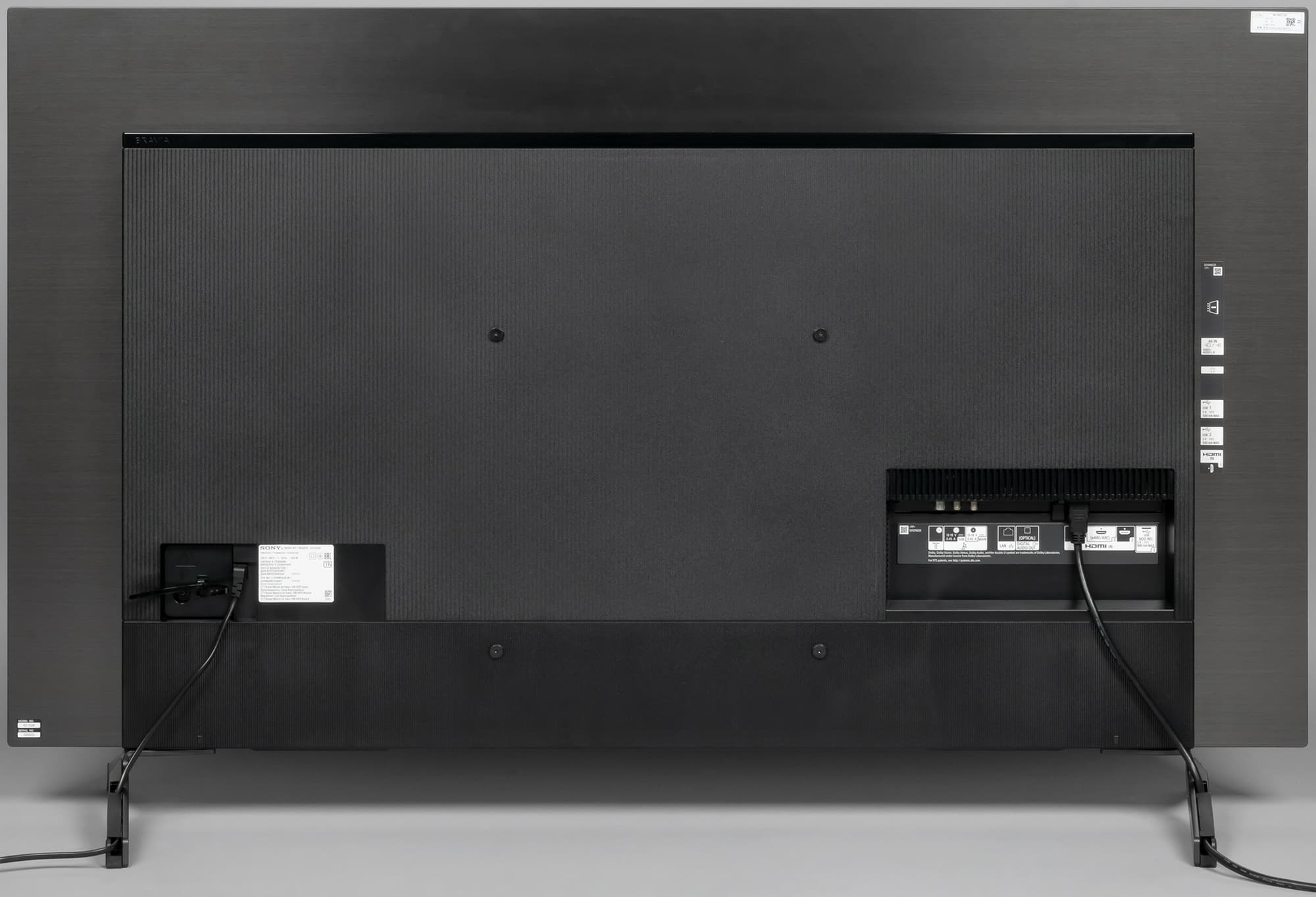 Дизайн строгий, нейтральный, поэтому зрителя ничего не отвлекает от происходящего на экране. Матрицу OLED защищает фронтальная пластина из минерального стекла с зеркально-гладкой поверхностью. Эффективный антибликовый фильтр снижает яркость отраженных объектов до такой степени, что зеркальность экрана в большинстве случаев просмотру не мешает. Но отражение ярких источников света в экране все же видно. Следы от пальцев не очень сильно снижают антибликовые свойства и удаляются относительно легко.