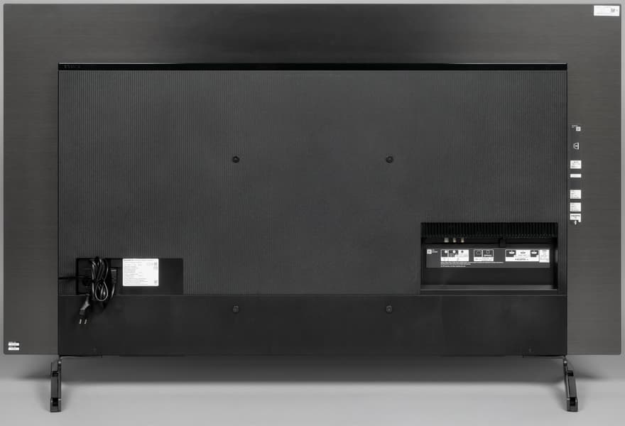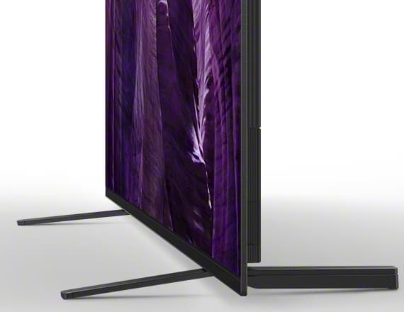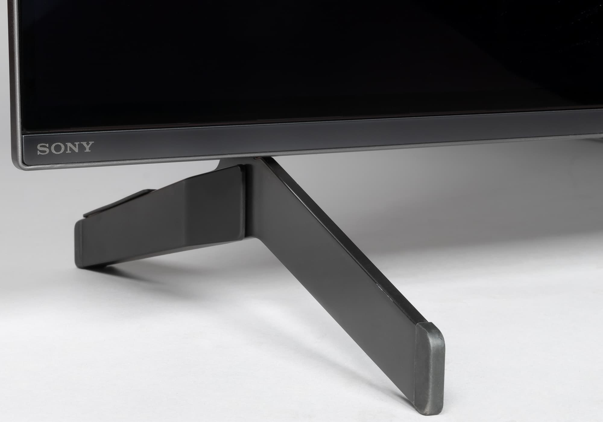 В точках соприкосновения оснований ножек с поверхностью, на которой стоит телевизор, есть резиновые накладки. Кабельные каналы сзади на основаниях ножек позволяют зафиксировать по паре нетолстых кабелей (или один толстый) и вывести их назад.