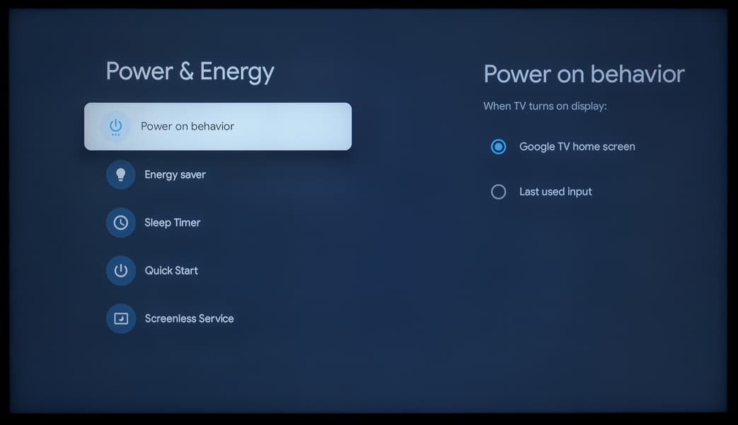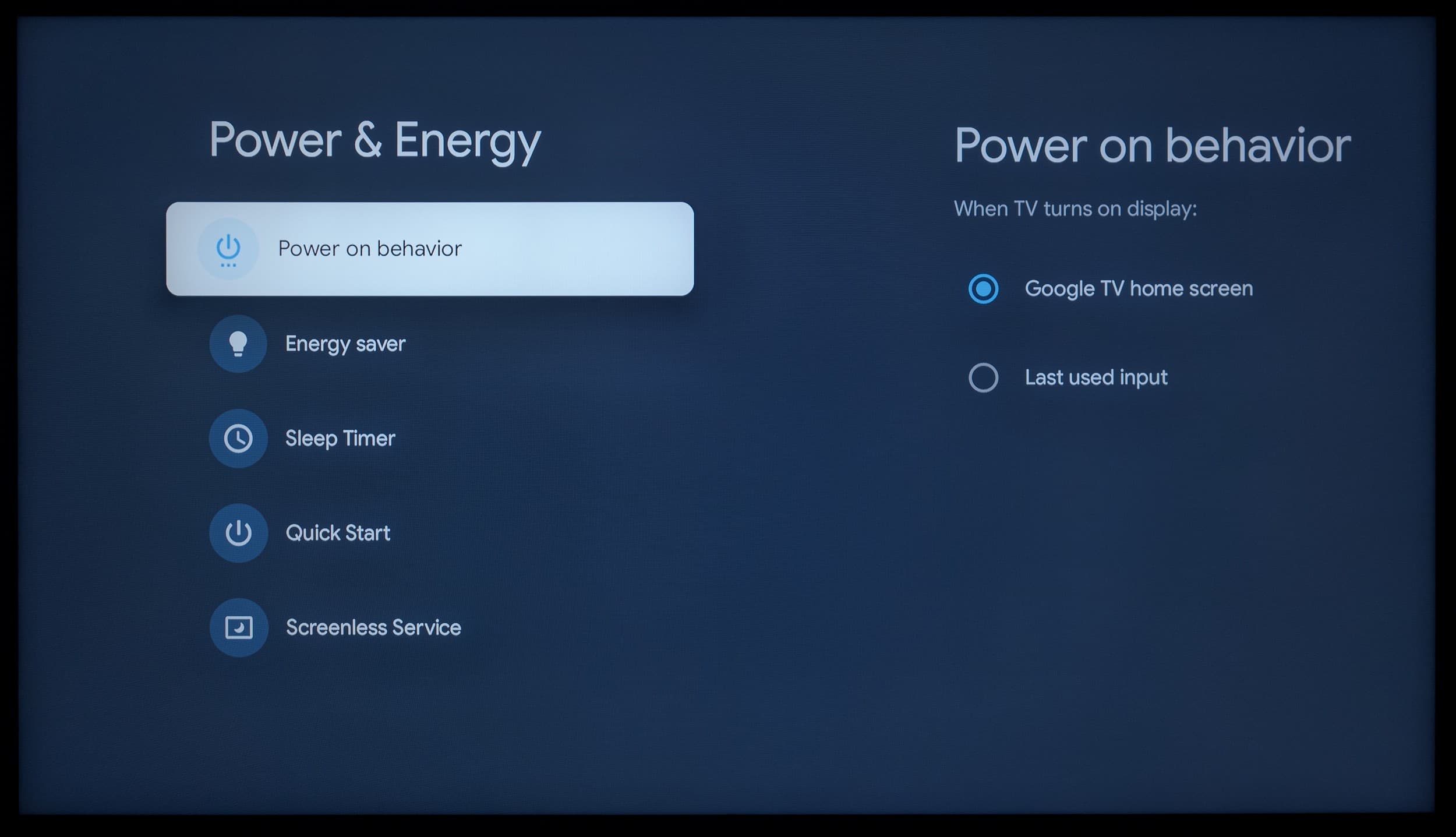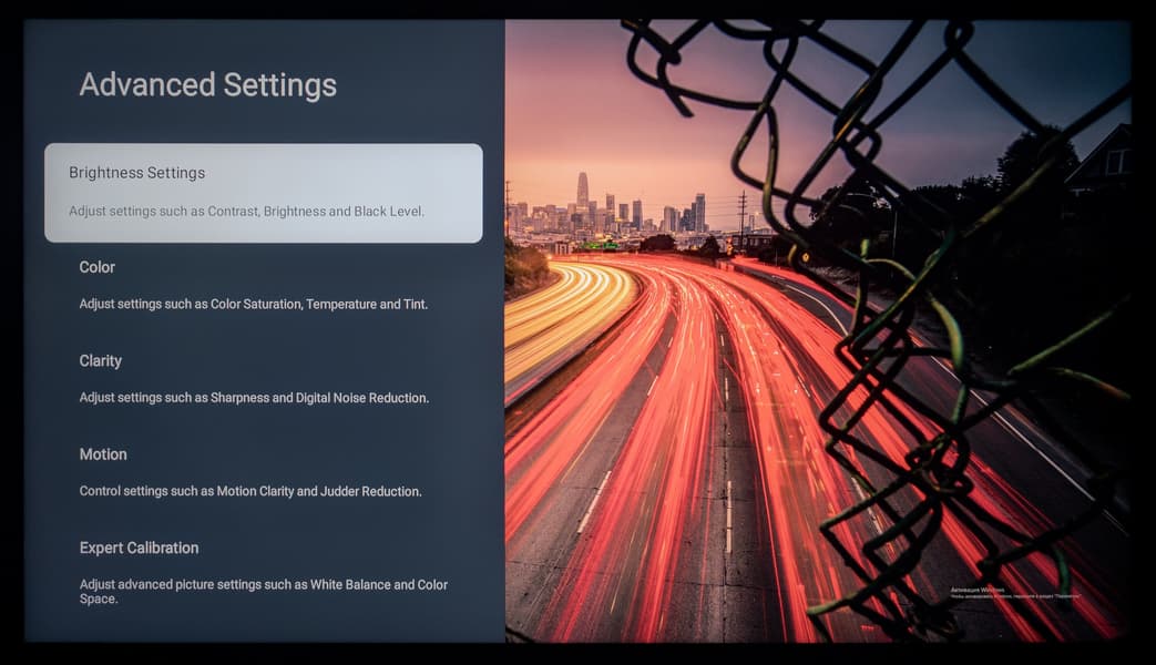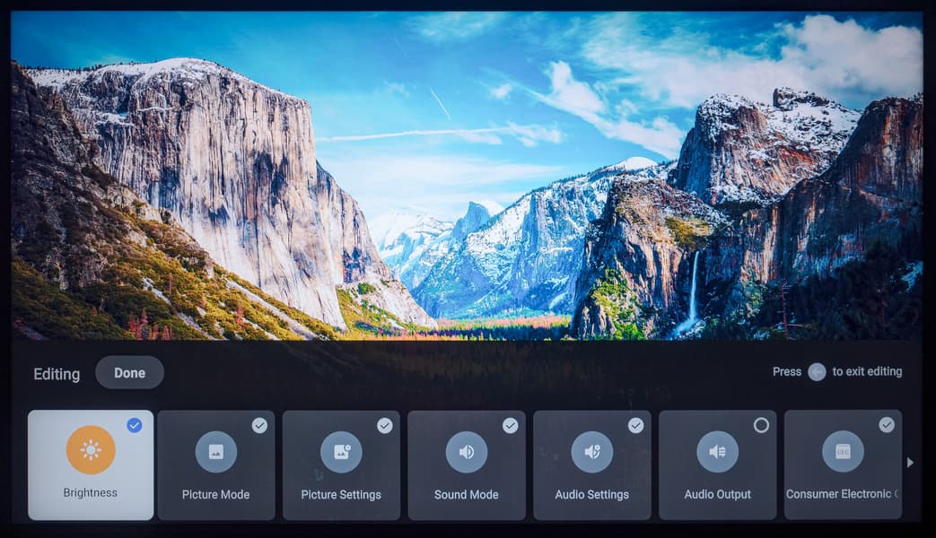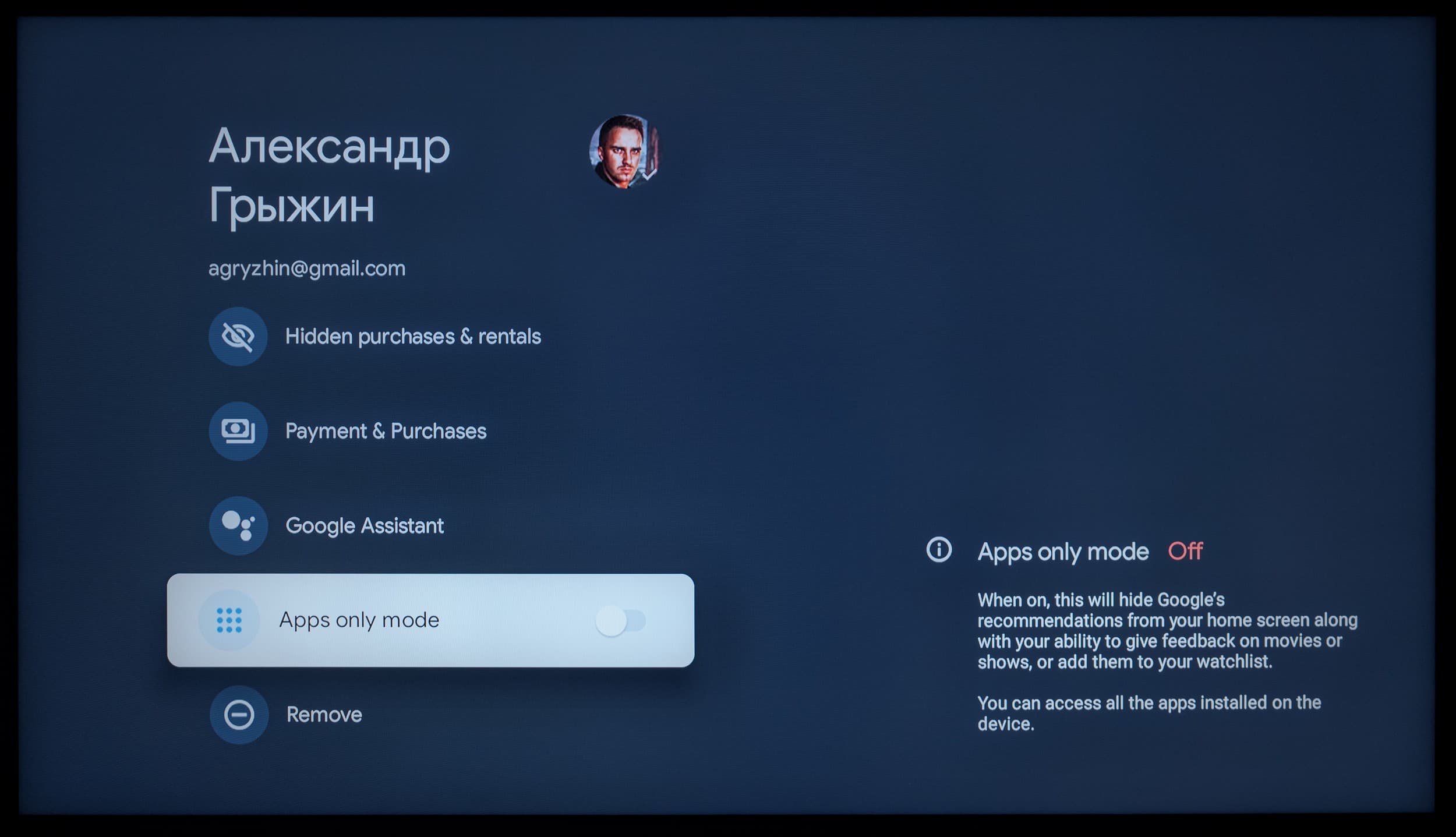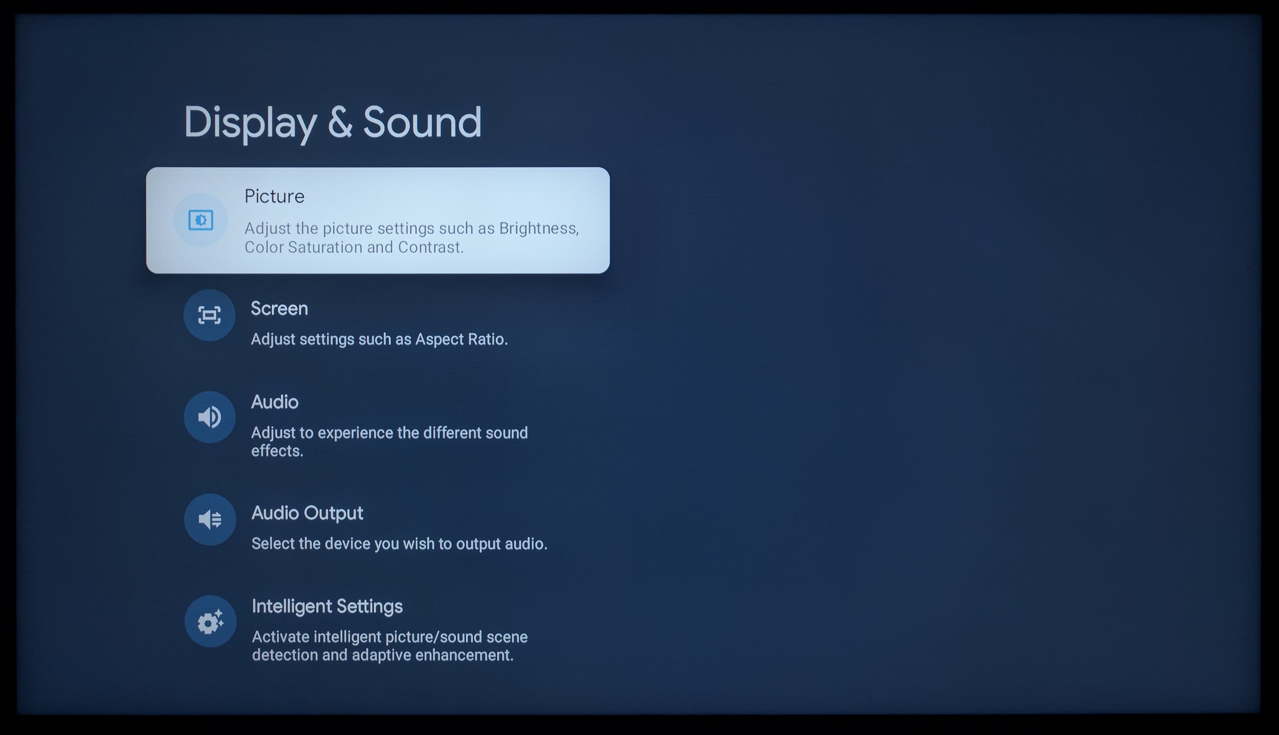 Что касается всех остальных настроек, то из-за использования оболочки Google TV они перебрались на отдельный экран, закрывающий собой воспроизводимый контент. Основной OSD-экран построен по принципам блочной структуры, со сдвигом вправо при наличии дополнительных подразделов.