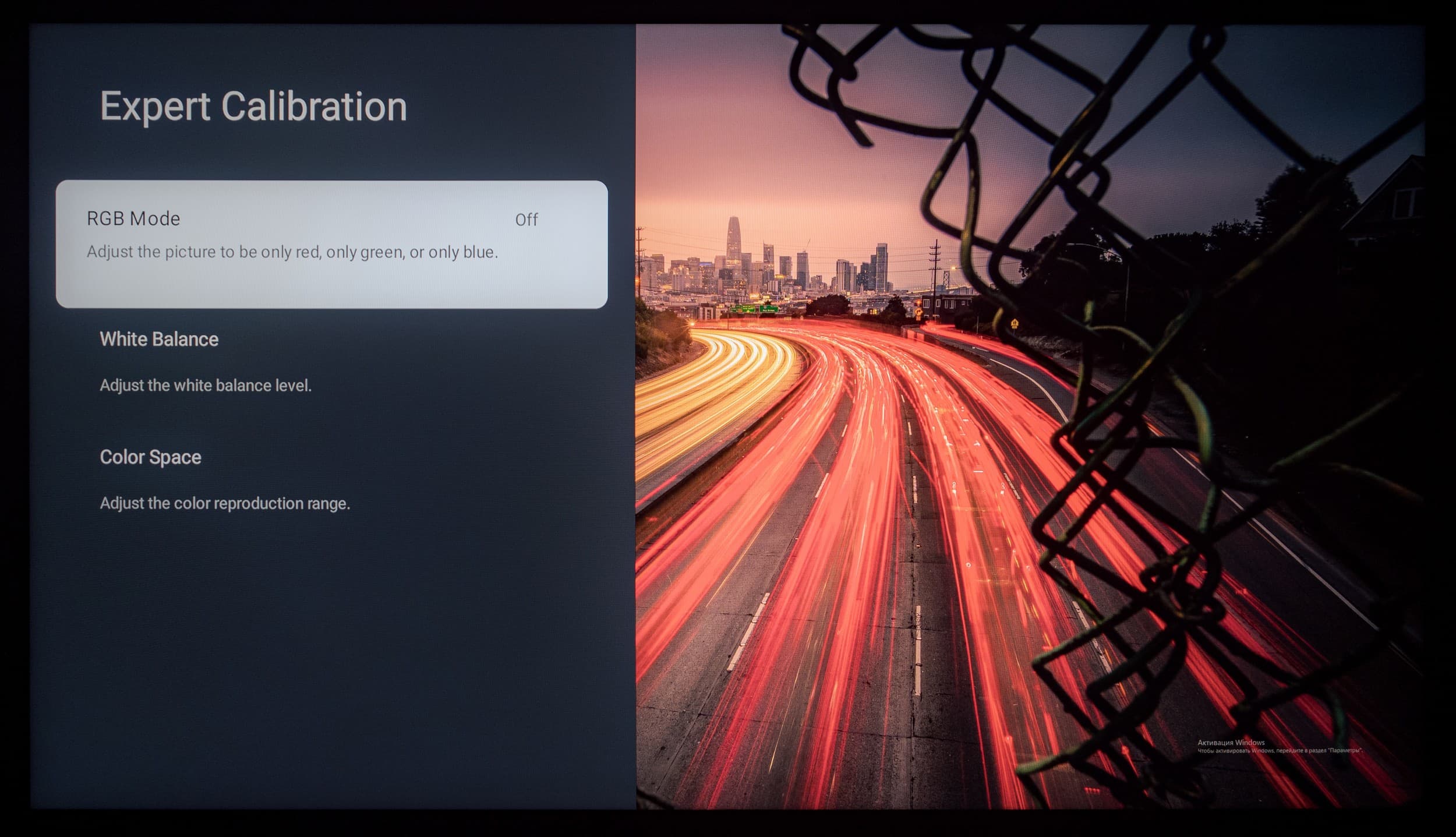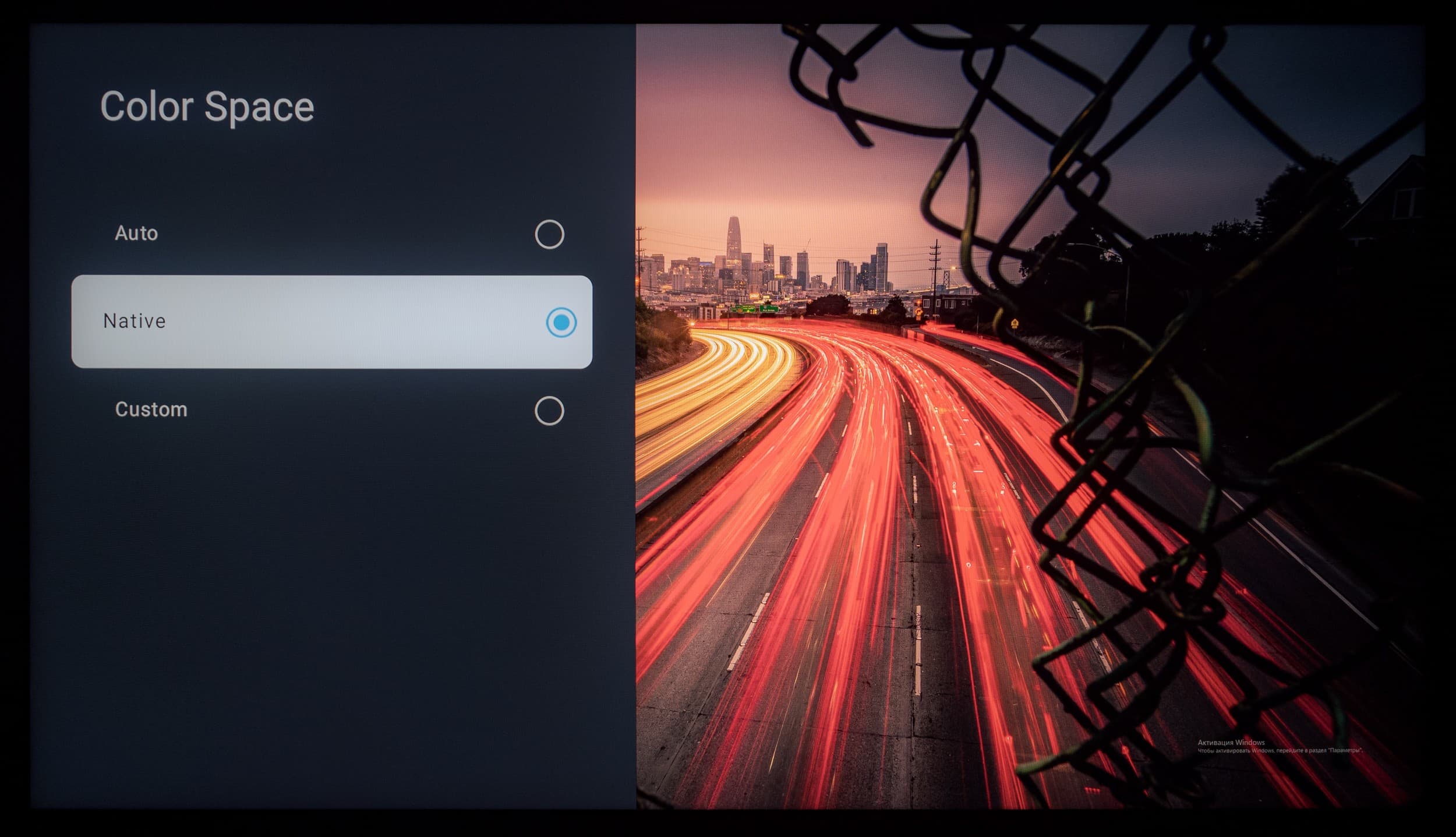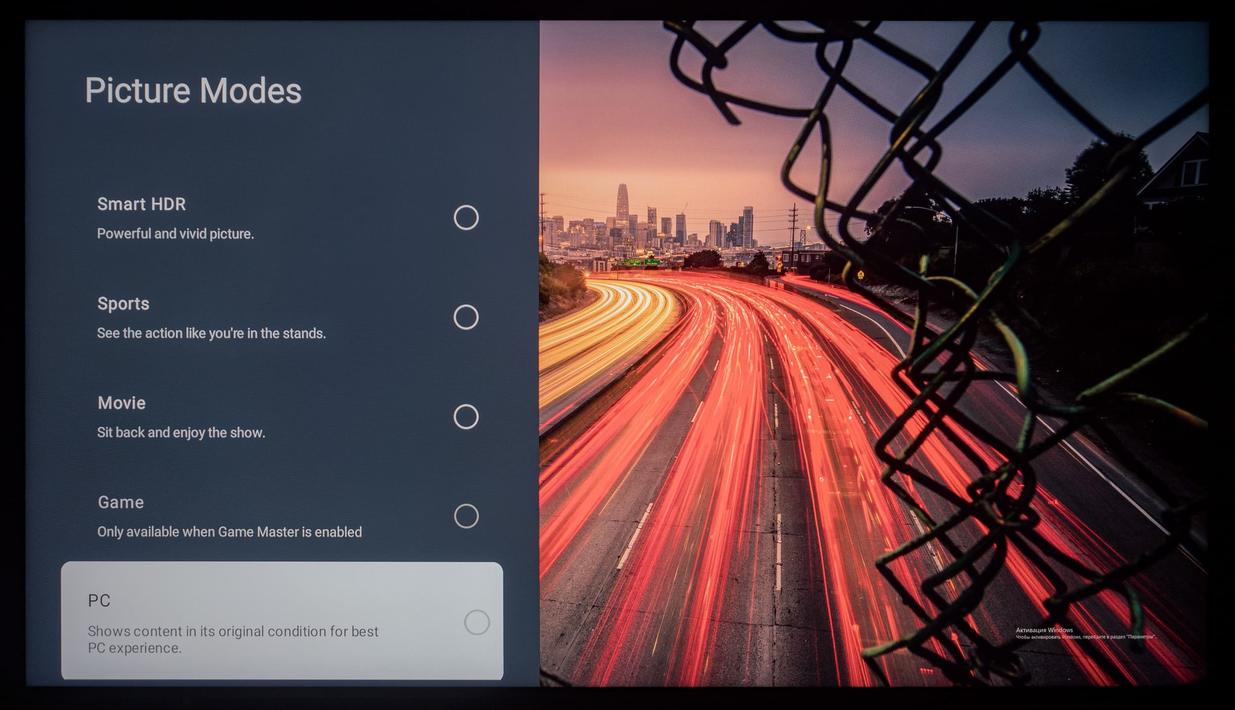 В продолжение темы меню отметим, что настройки изображения сохраняются для всех приложений сразу и для каждого из внешних входов, включая ТВ-тюнер, раздельно, плюс еще настройки для сигнала HDR.
