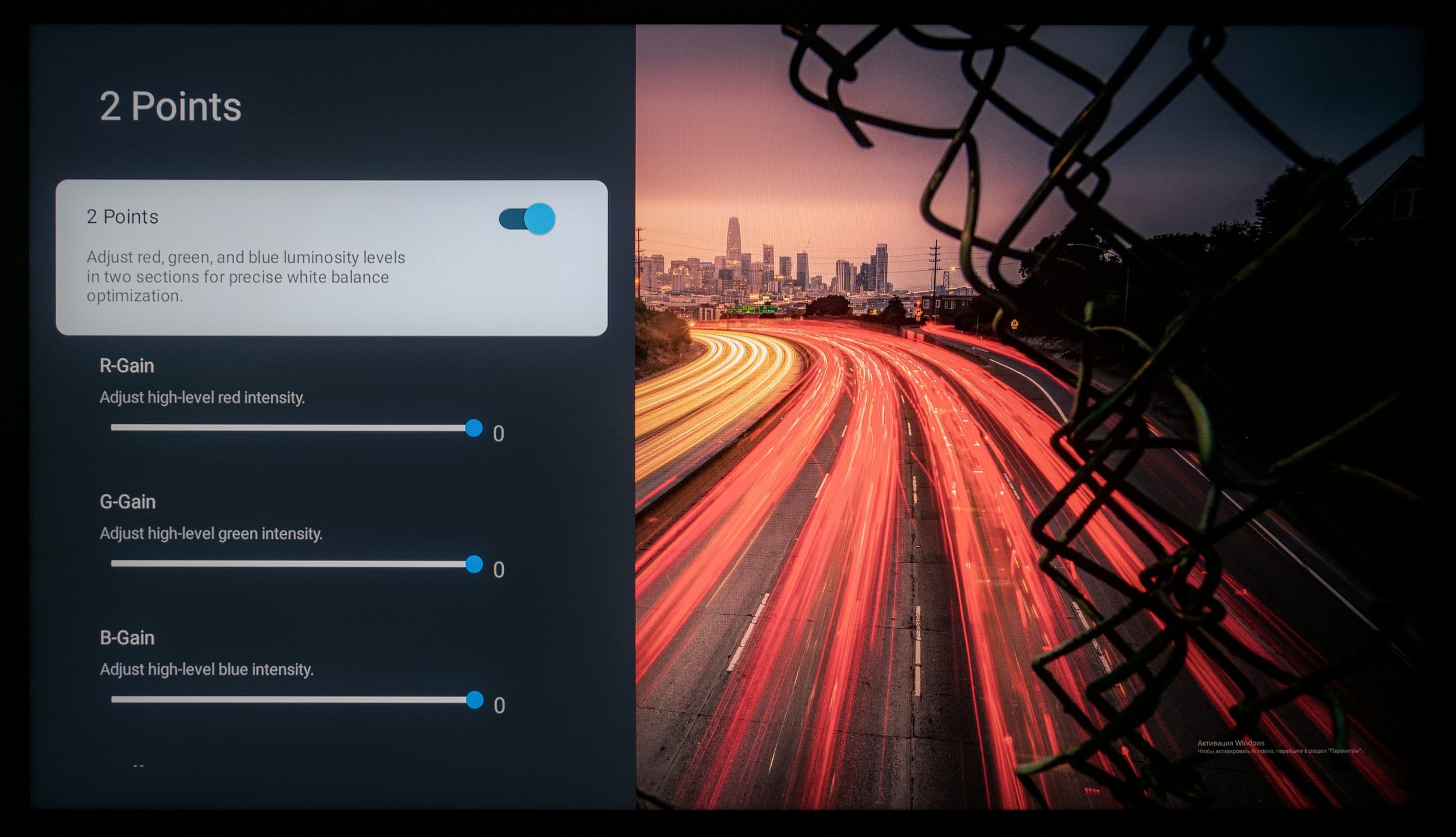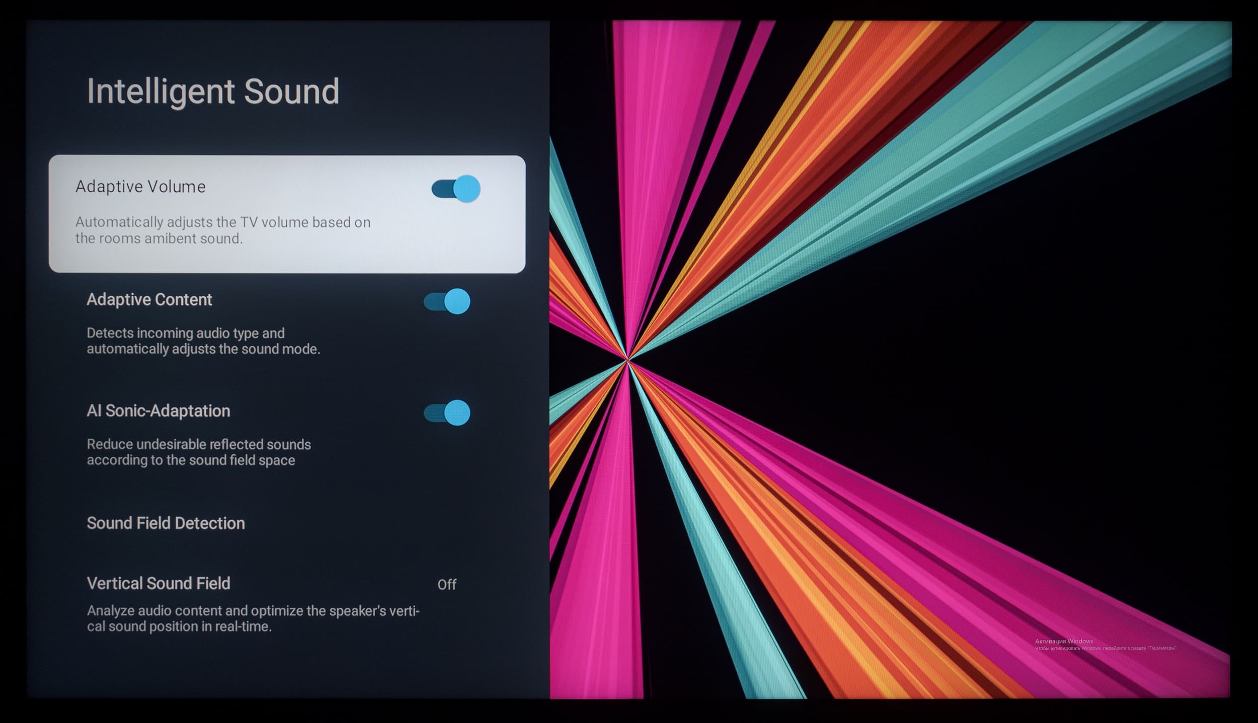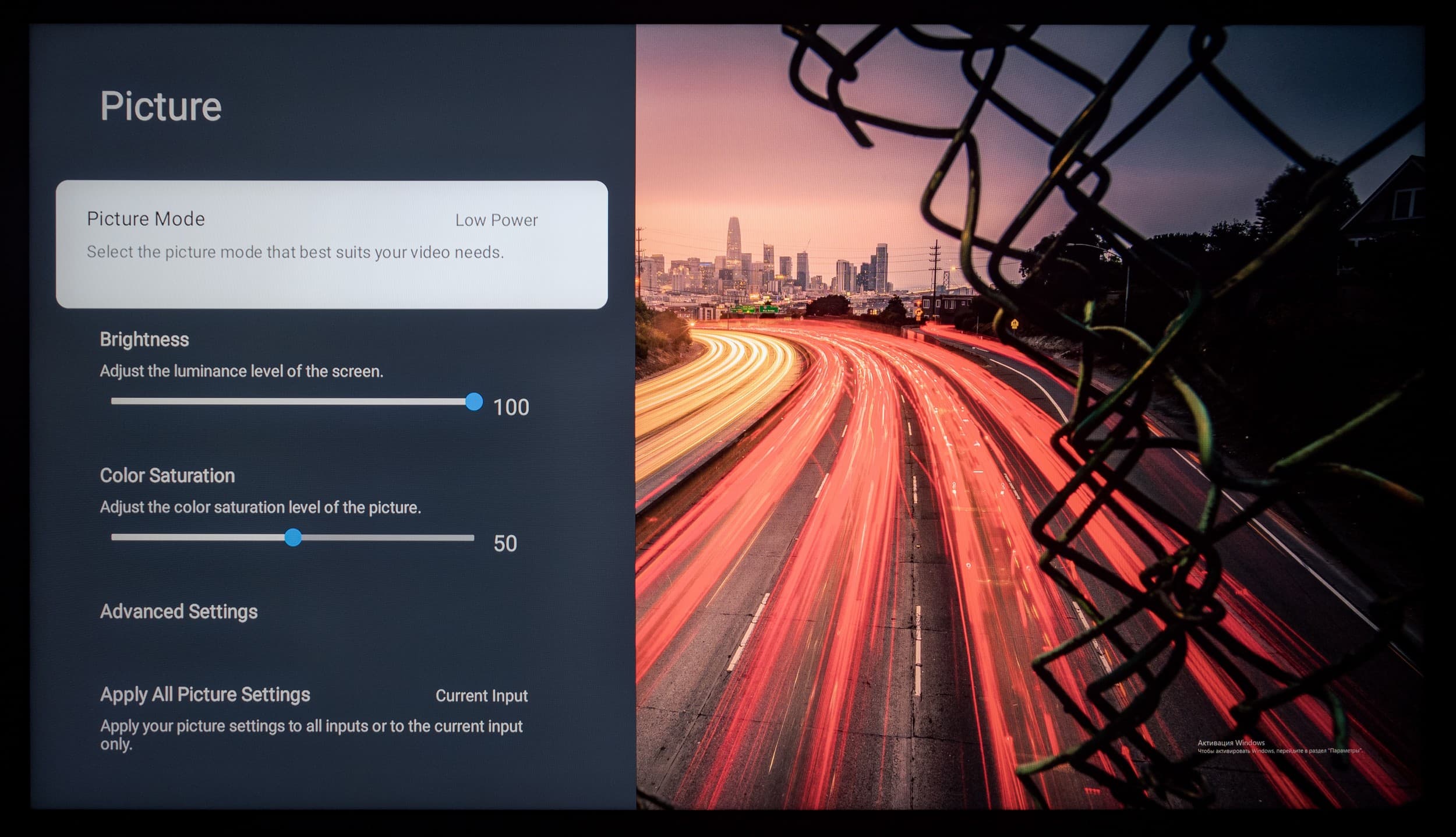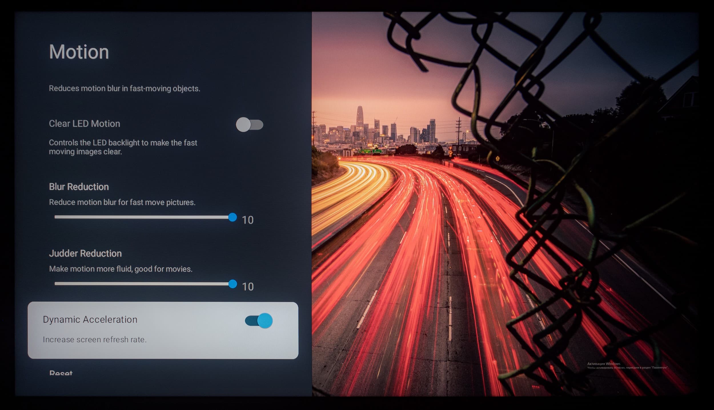 В продолжение темы меню отметим, что настройки изображения сохраняются для всех приложений сразу и для каждого из внешних входов, включая ТВ-тюнер, раздельно, плюс еще настройки для сигнала HDR.