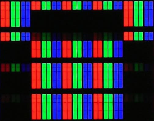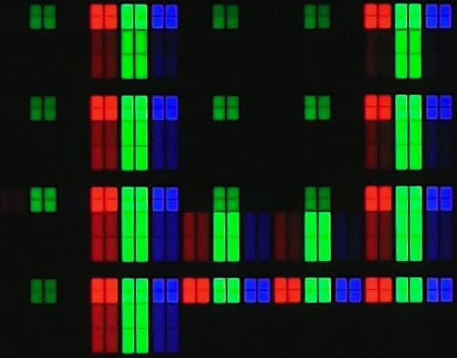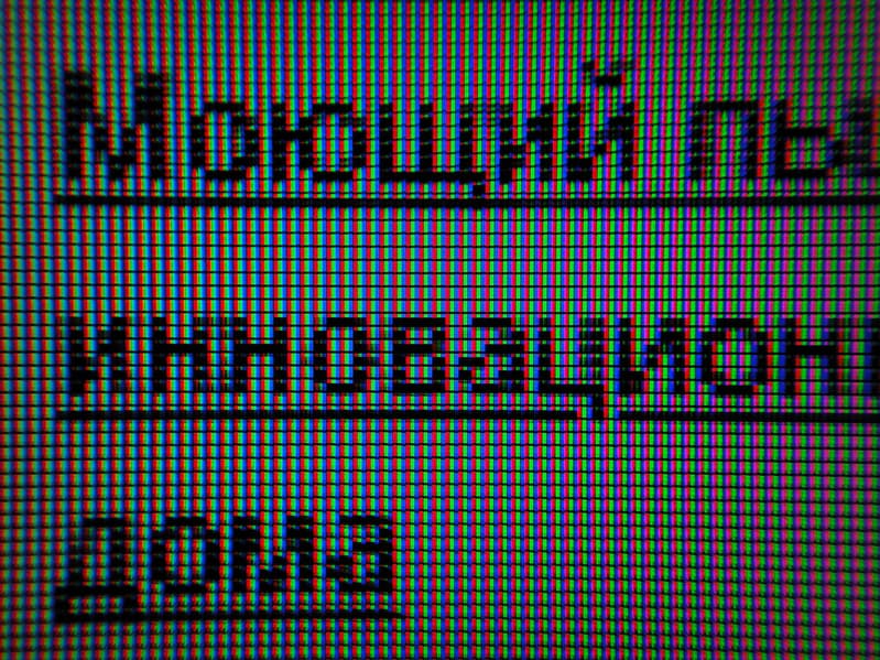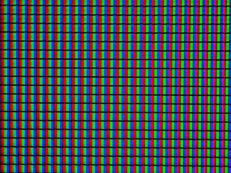 По микрофотографиям матрицы видна характерная для некоторых подтипов VA-матрицы структура субпикселей.