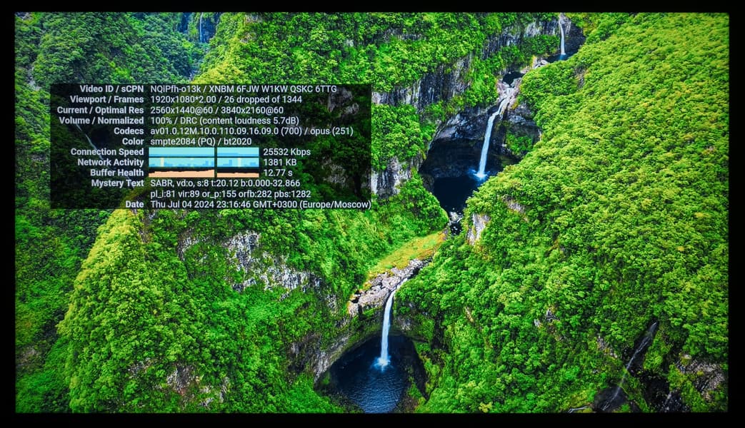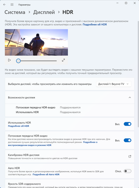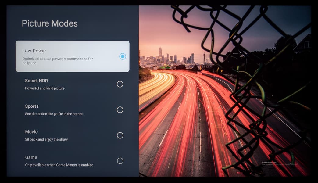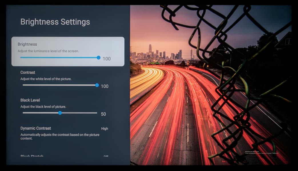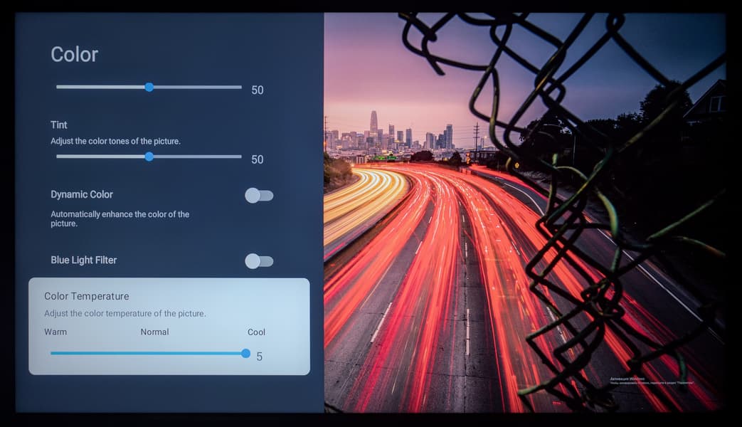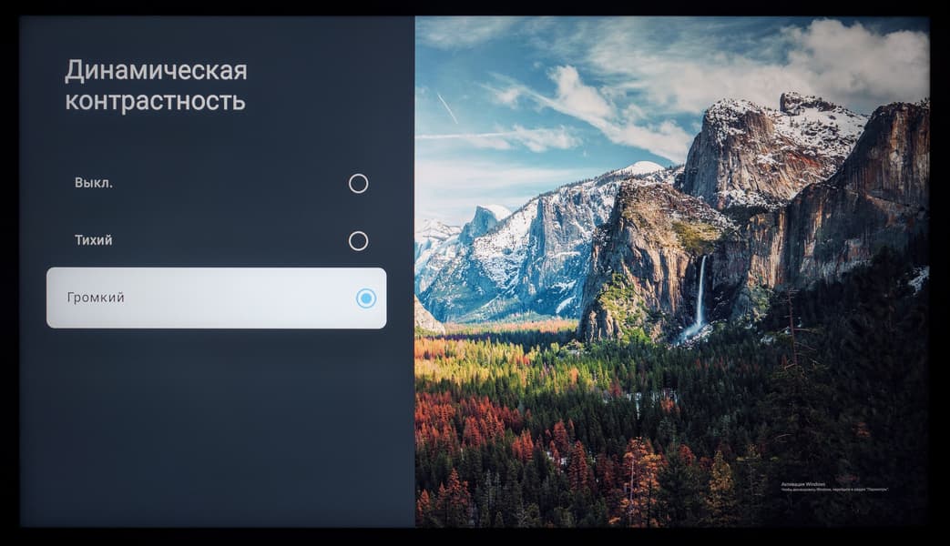 Вместе с тем, протестированный телевизор TCL воспринимает любые форматы HDR (Dolby Vision, HLG, HDR10, HDR10 Adaptive), но информационное окно в первые 5 секунд после старта видео показывает только варианты HDR10 и HLG. Возможность выбора предустановленных режимов изображения сохраняется, но их названия и подход к изменению картинки при этом не меняются — всё то же самое, что и для SDR.