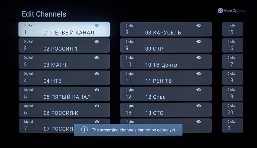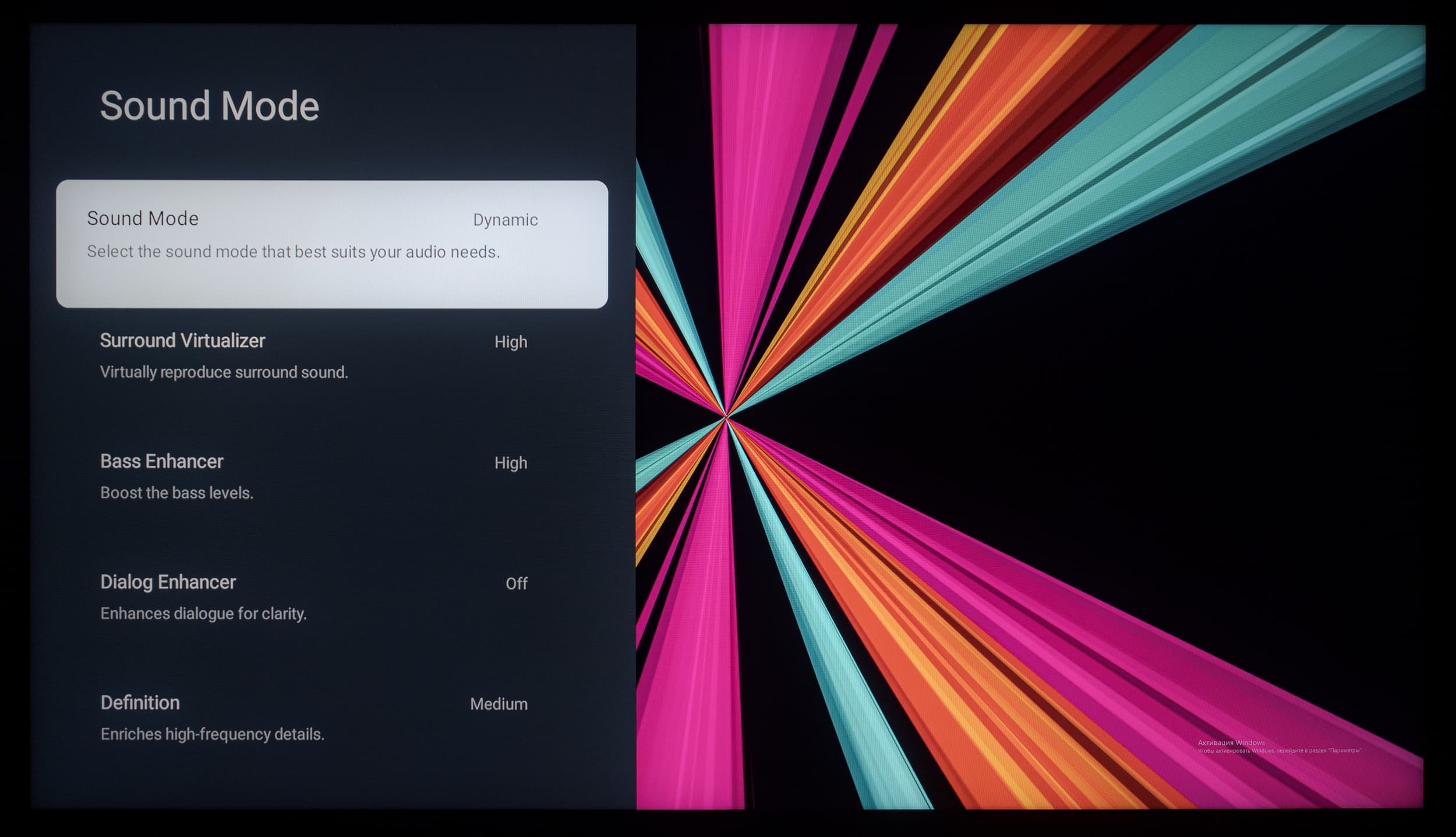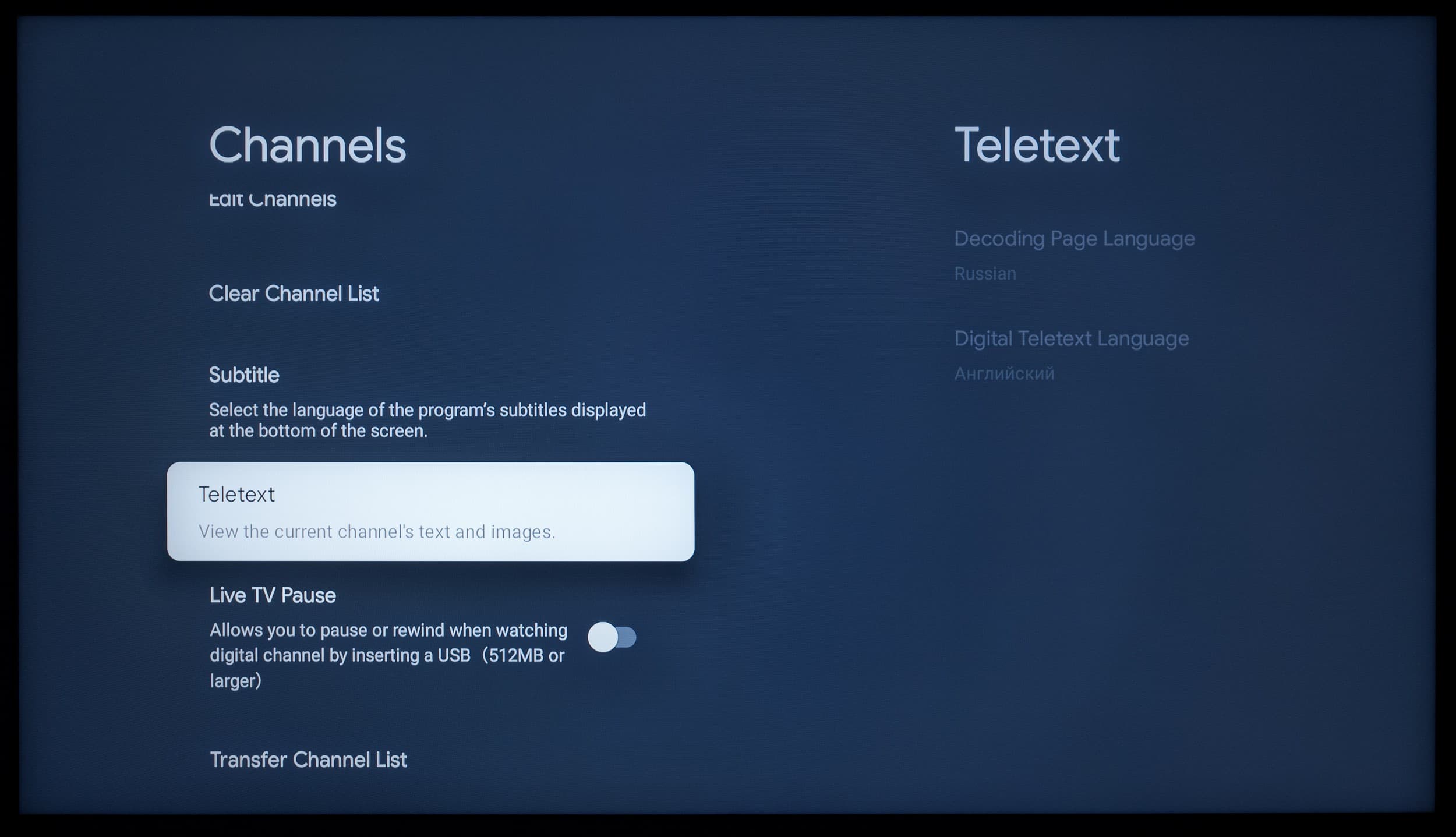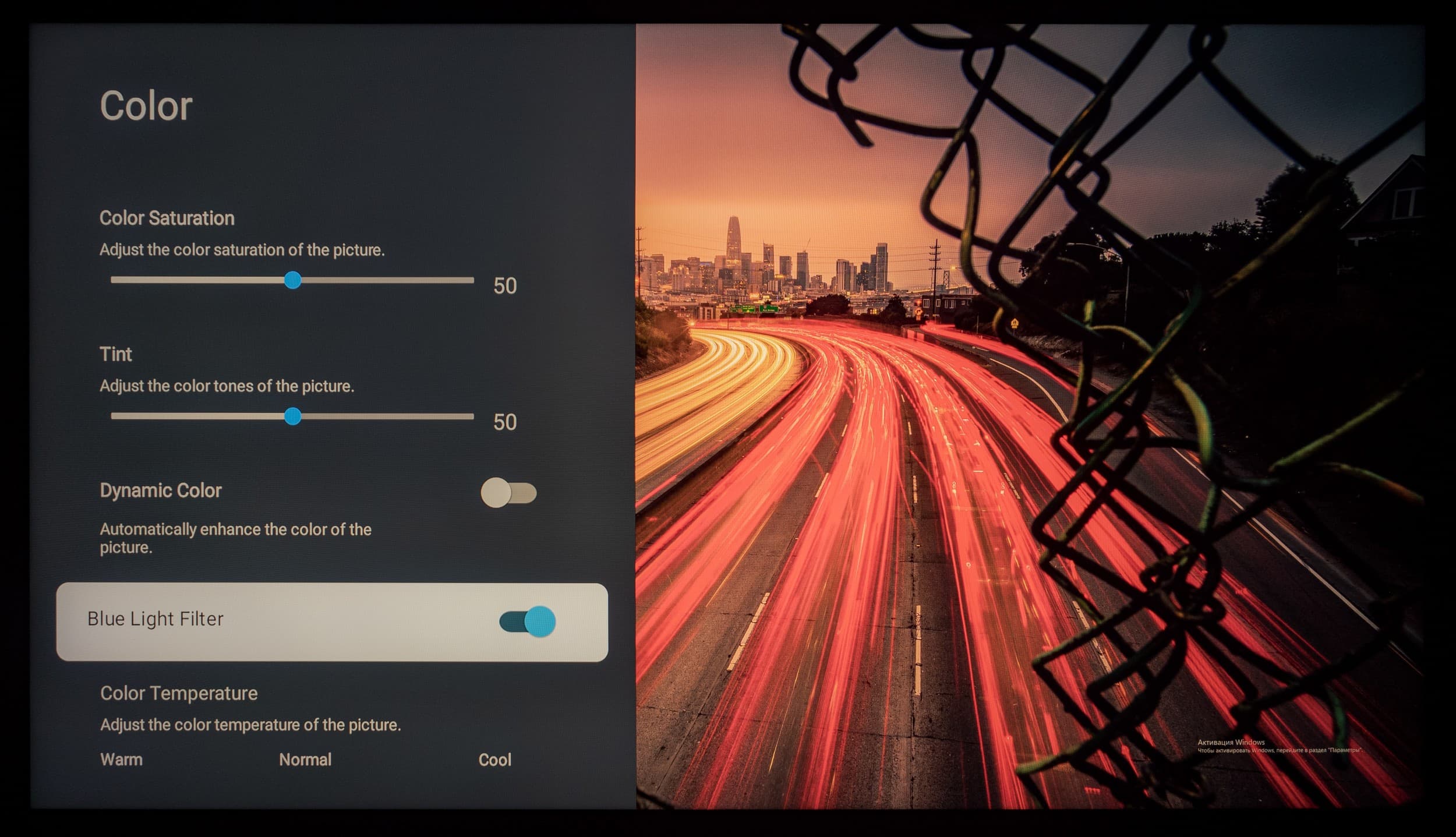 В случае с телевизором TCL мы использовали английскую локализацию интерфейса из-за частично некорректного (и часто, прямо скажем, смешного) перевода пунктов и их описания в некоторых разделах настройки. Надеемся, что в ближайшее время в компании одумаются и приведут перевод на русский язык в норму.
