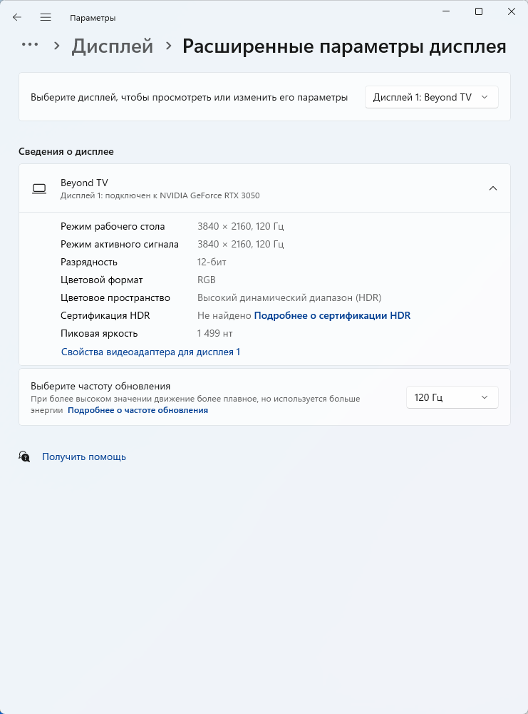 | Максимальная частота обновления экрана | 120 Гц (144 Гц для видеокарты AMD) |