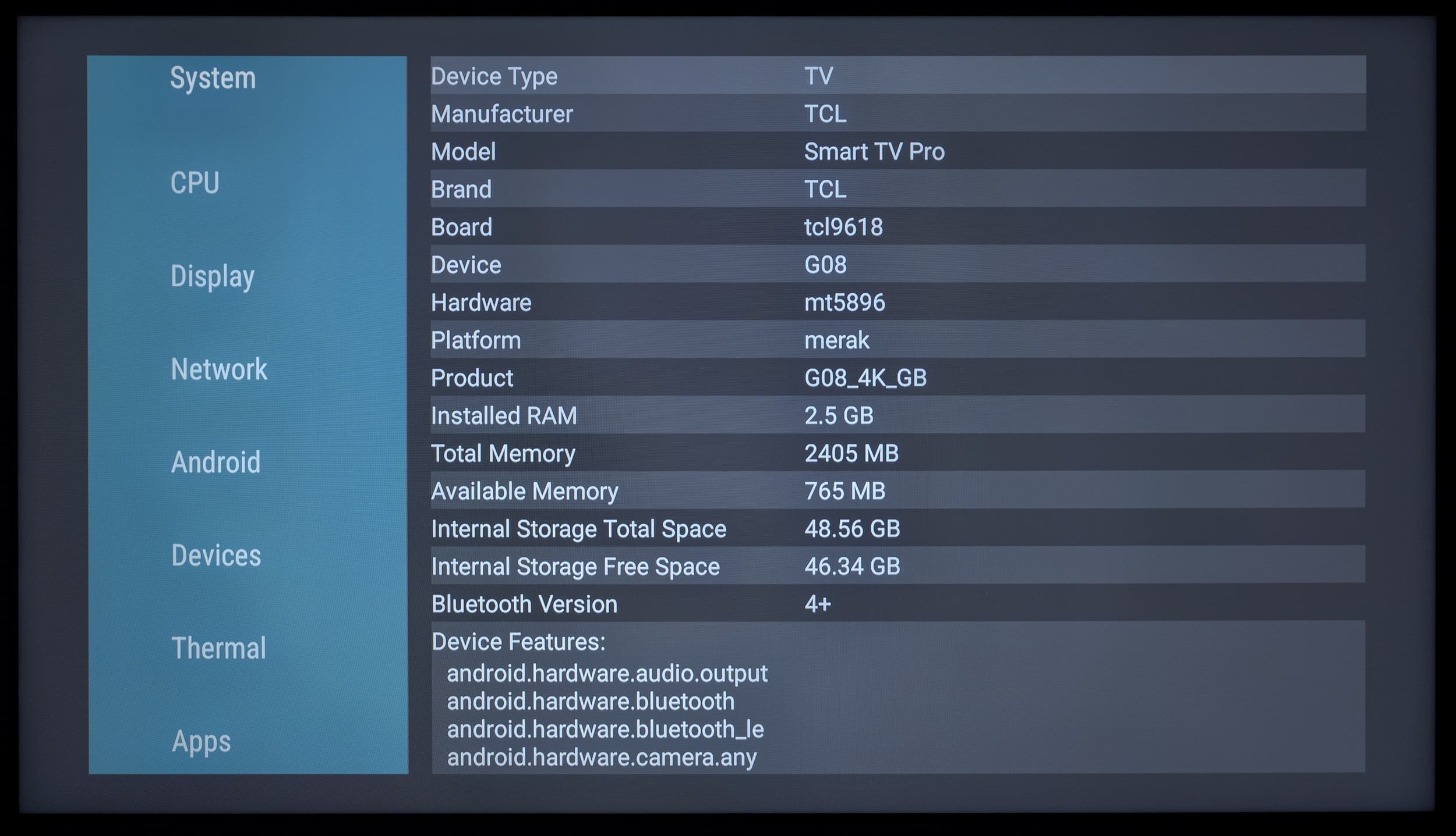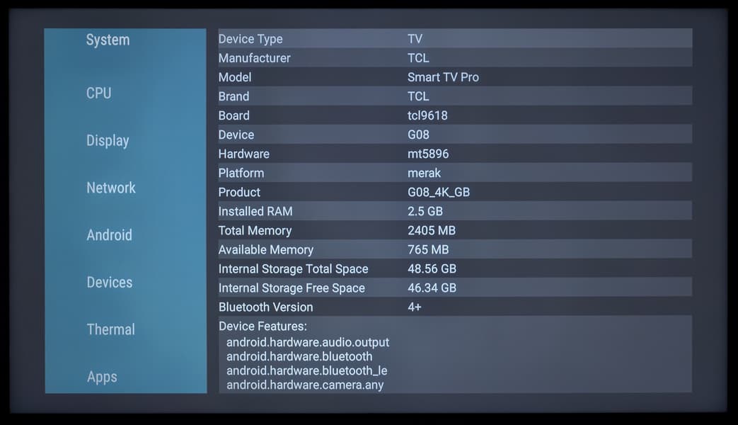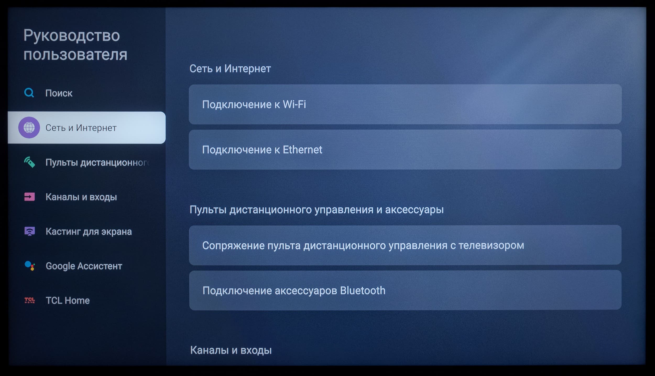Встроенный в телевизор помощник обеспечивает быстрый доступ к автоматической очистке системы, диагностике сетевого подключения, удалению приложений и управлению ими. Есть у модели TCL и полноценное руководство пользователя в электронном виде — максимально удобно и всегда под рукой. Потребитель сможет найти очень подробные и наглядные (с графиками, таблицами, картинками) ответы на многие свои вопросы по работе с устройством.
