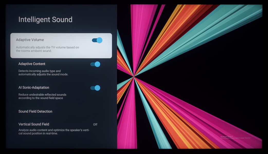 - Субъективно достаточное количество зон локального управления яркостью для условий размещения 85-дюймового экрана в 3,5—5 метрах от пользователя