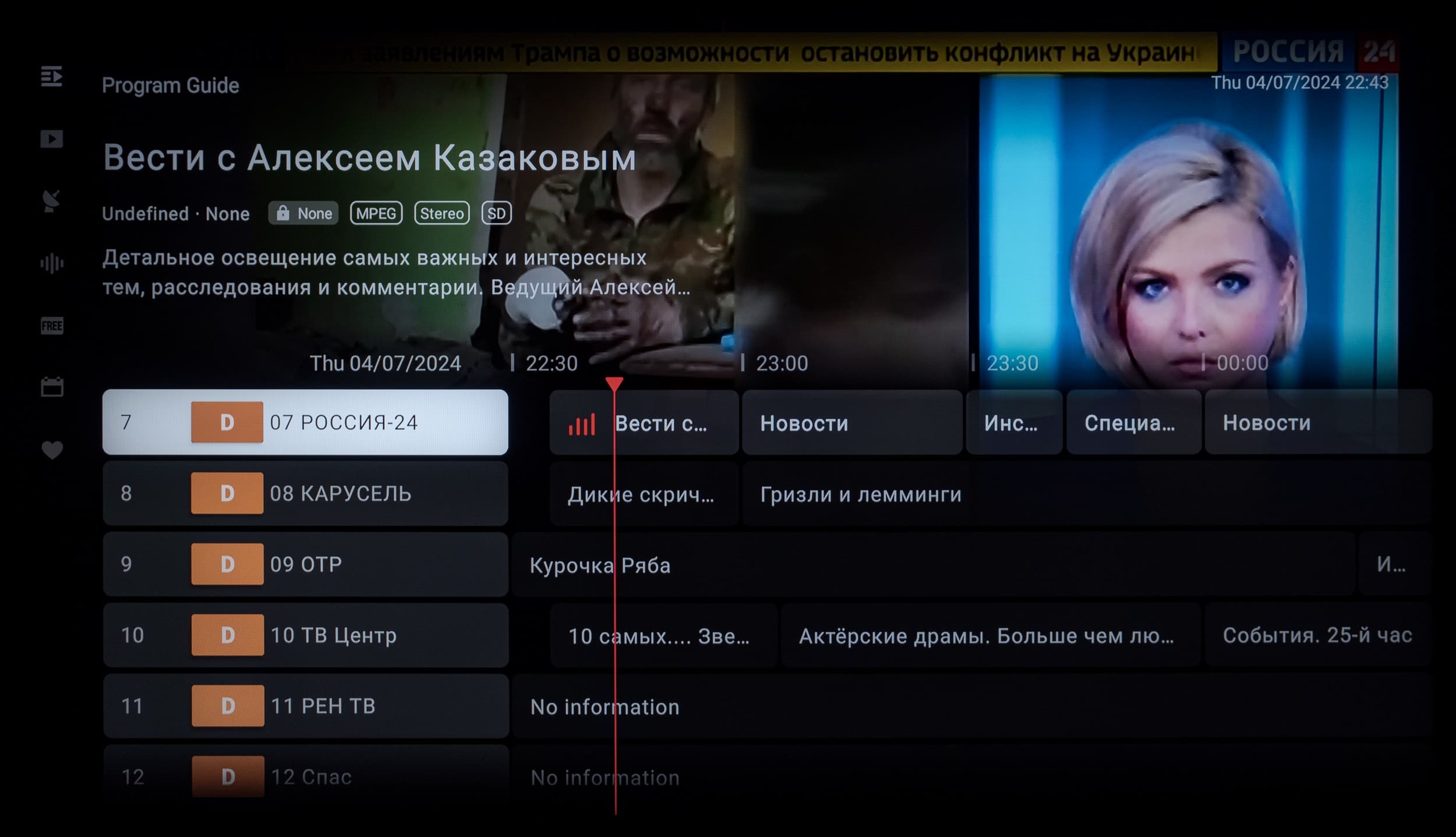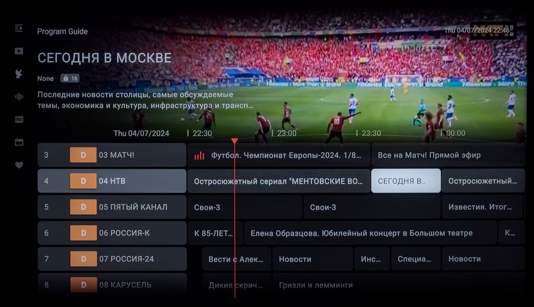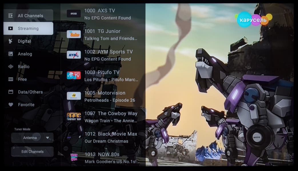 - Приятно и стильно оформленный экран работы с ТВ-программой и IPTV — встроенное приложение TCL Channels