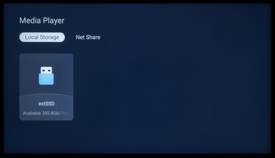 При подключении внешнего накопителя система уведомляет о его обнаружении и предлагает перейти в медиаменеджер. При переходе к этому уведомлению (в том числе через отдельный блок со всеми собранными системой уведомлениями) вы можете открыть доступ к новому диску через встроенный проводник (с крайне ограниченной функциональностью), воспользоваться диском для записи ТВ-трансляций через функцию PVR, провести его форматирование средствами системы.