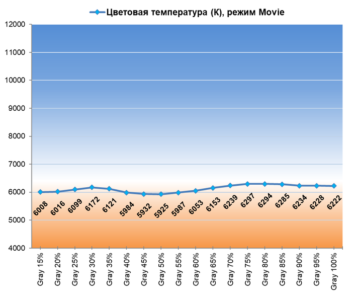 В вопросах же настройки цветовой температуры и баланса серого все три режима нас приятно удивили: 6100—6220 К c максимально высокой стабильностью серого клина и отсутствием явных паразитных оттенков. Выставленный по умолчанию режим Low Power отличается классическим «холодным» тоном, а потому от него мы предлагаем отказаться еще на этапе первой настройки ТВ.