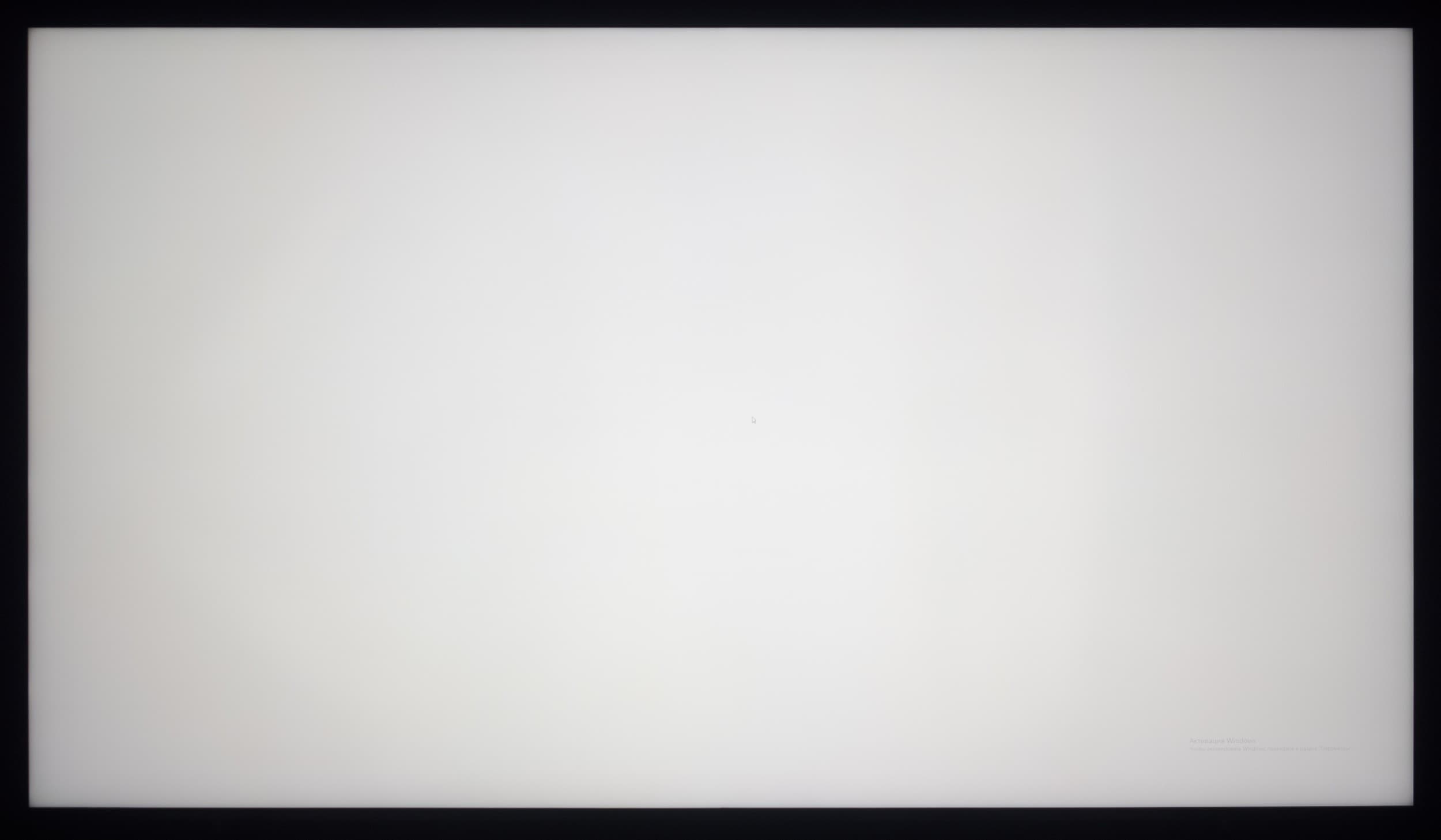 В первом случае мы видим характерное высветление черного по краям панели, но такова ситуация лишь в случае строго перпендикулярного взгляда. При его смещении в ту или иную сторону будет визуально смещаться самая темная зона. При этом общую равномерность подсветки мы можем оценить как высокую. Отсутствуют явные дефекты, однородность высокая.