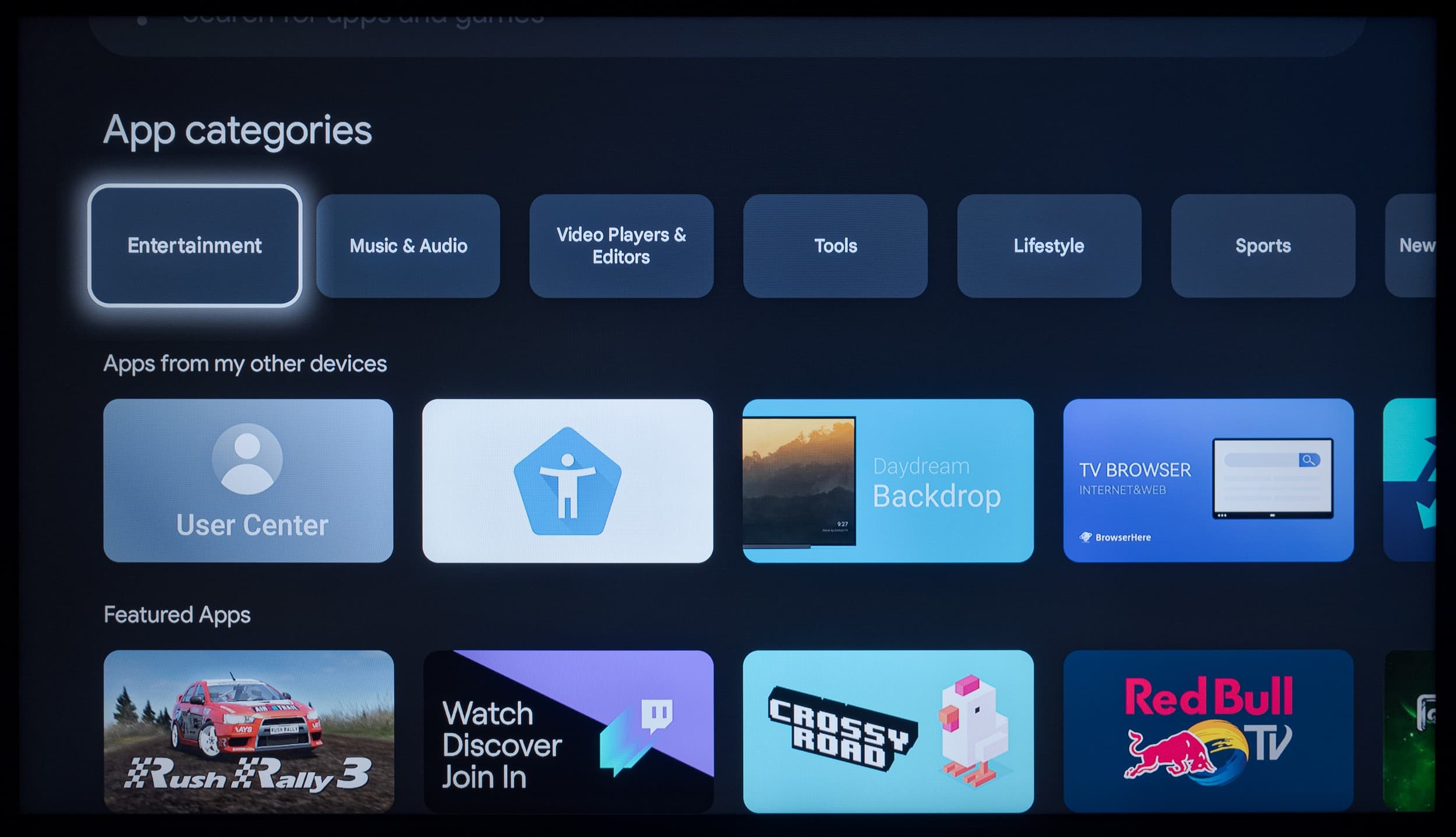 В Google Play официально доступных приложений для платформы Google TV/Android TV не так много, но пользователя это практически не ограничивает, ведь телевизор способен переварить многие подходящие для используемой программно-аппаратной платформы APK-инсталляторы. Главное — чтобы на нужное вам приложение хватило мощности встроенной в ТВ начинки.