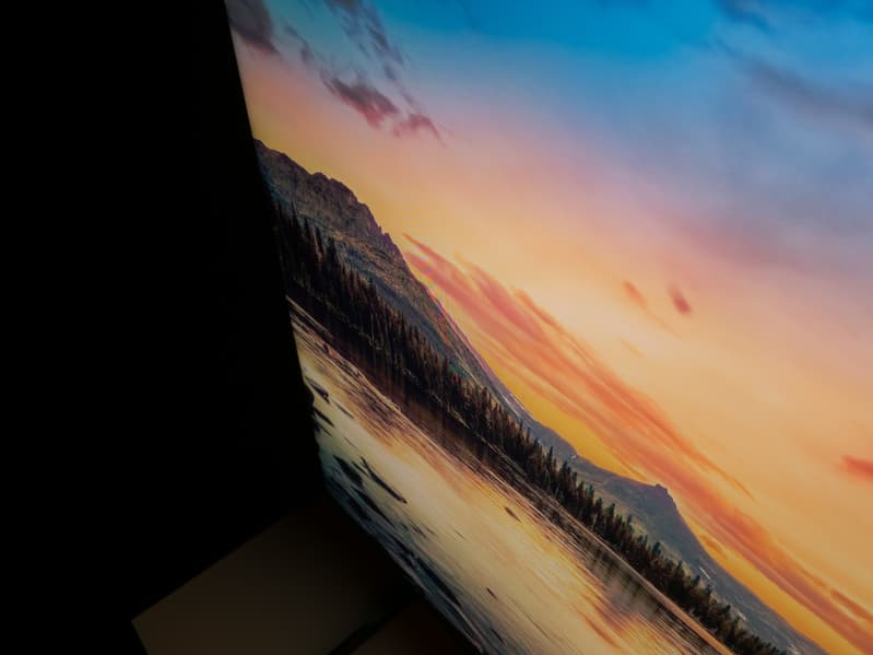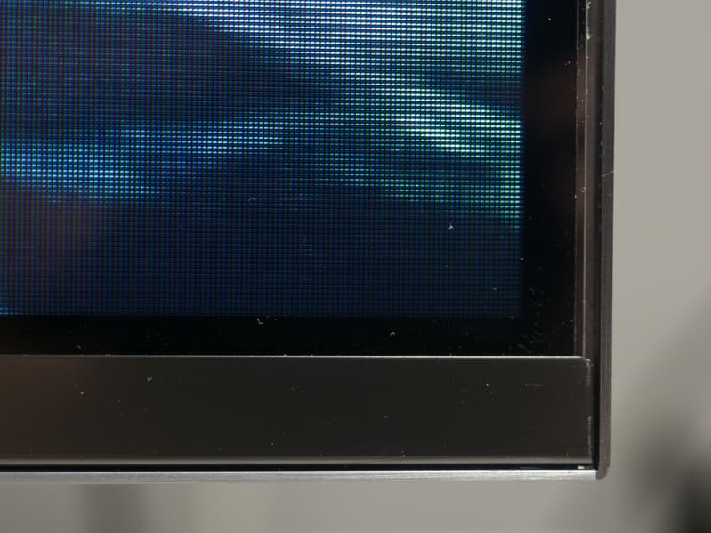 Если сидеть недалеко от экрана, то черное поле по углам заметно светлее, чем в центре, но обычно этого нельзя увидеть, так как рабочее расстояние до экрана находится в диапазоне 2—3 метров, а при нем эта визуальная особенность сходит на нет.