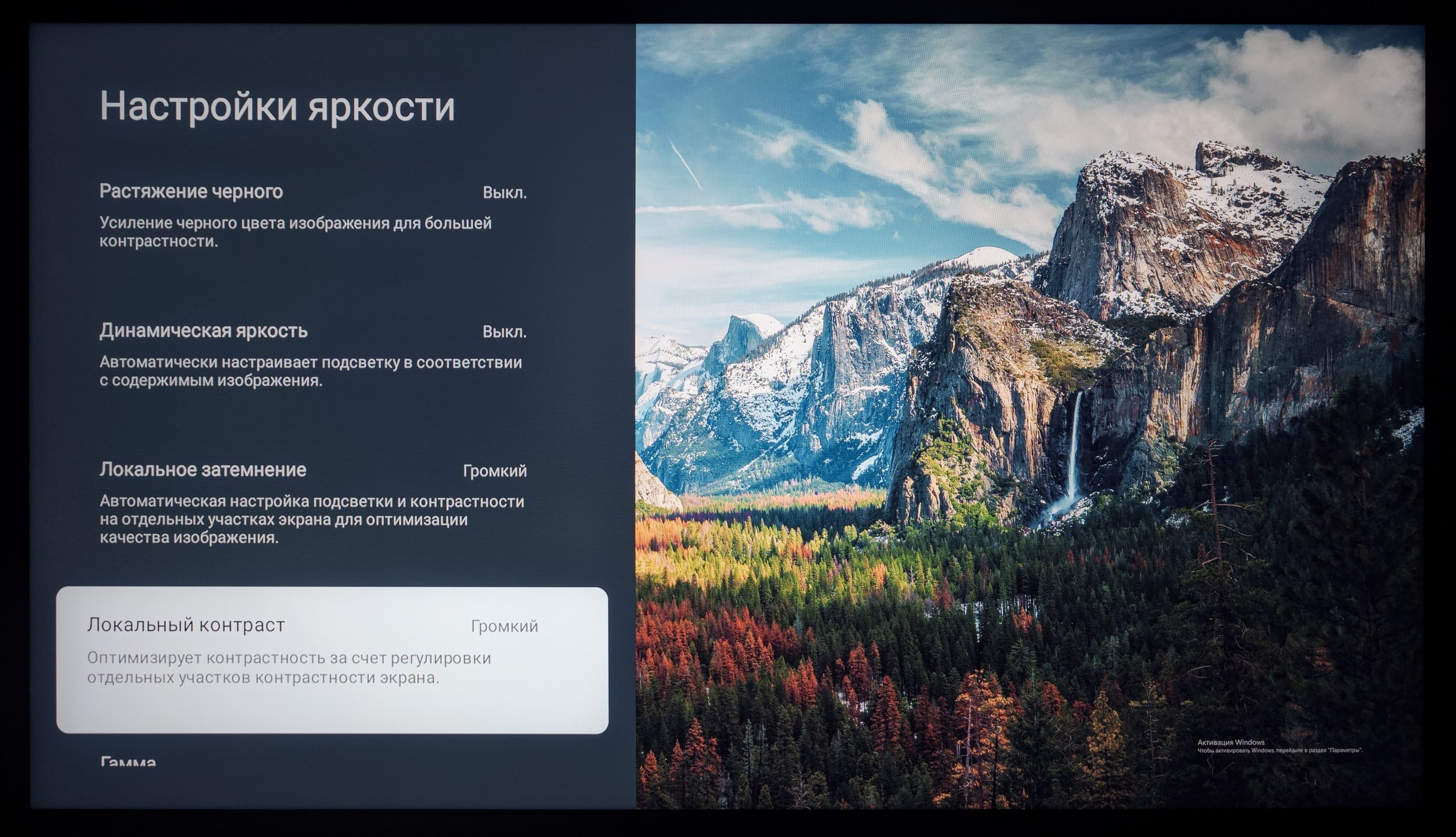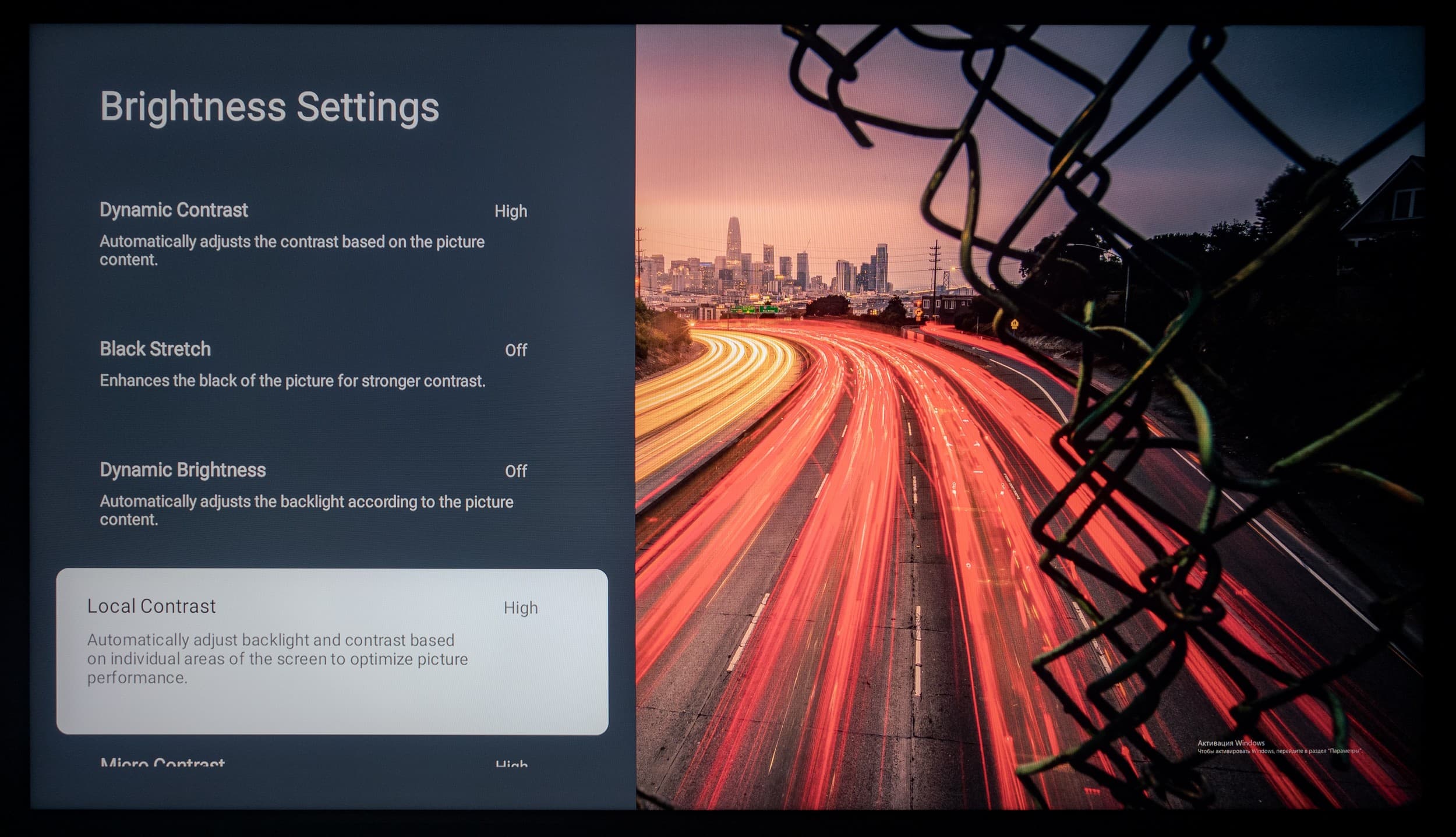 Здесь же следует отметить, что максимальная яркость в режиме HDR у телевизора фактически такая же, как в режиме SDR, цветовой охват не меняется и остается на изначальном уровне (нативном/расширенном) если того требует воспроизводимый контент. При необходимости происходит эмуляция записанного в метаданные ЦО. При активации большей части опций, ответственных за работу локальной системы подсветки, телевизор TCL действительно старается выжать из подсветки тот же максимум, что и в режиме HDR. С таким поведением телевизора автор сталкивается впервые, но это, пожалуй, плюс, а не минус.