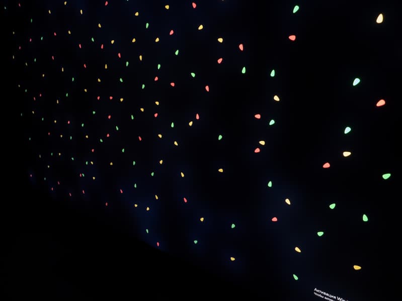 В более сложном тесте многозонная система подсветки телевизора TCL показывает себя хорошо, но не идеально. Есть характерные утечки света в области, которые должны (в идеальном варианте) оставаться черными. Поскольку площадь экрана составляет почти 20000 см² и имеется 2304 зоны локального затемнения, выходит, что одна зона покрывает площадь в ≈8,7 см². Предположив, что это квадрат, получаем зону почти 3×3 см. Для топового представителя TCL из ассортимента 2024 года — результат на 4 из 5. В ассортименте бренда есть более продвинутые и дорогие варианты, с количеством локальных зон управления подсветкой почти в 2,5 раза выше, чем у героя обзора. Но доплата за это — еще 100 тысяч рублей. Тут уж каждый решит сам, оправдана ли такая переплата за более точное управление яркостью зон или нет.