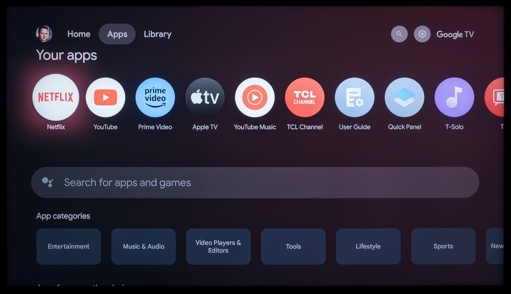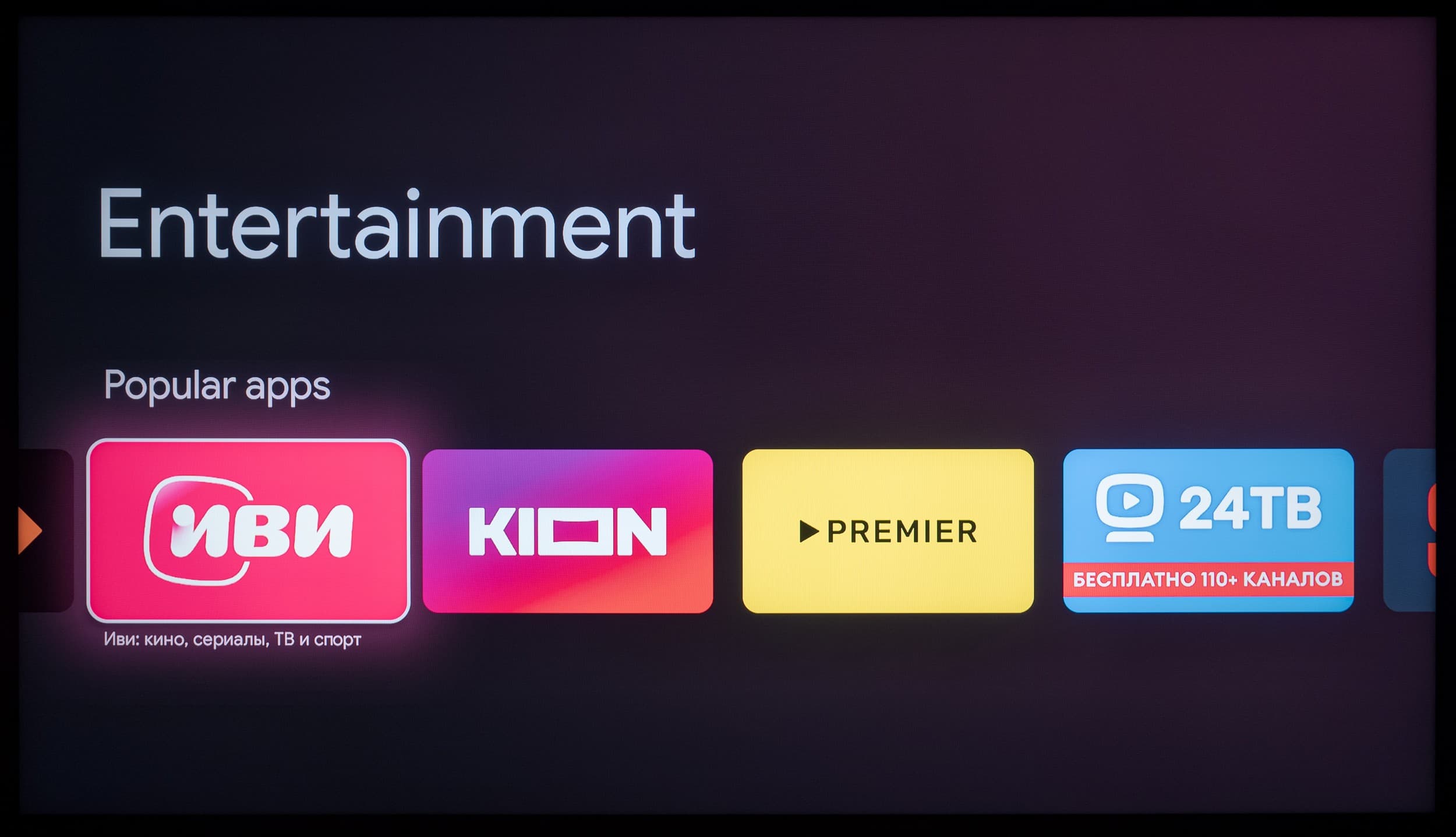 В телевизоре предустановлено достаточное количество приложений, в том числе разработчиков из СНГ, а также часть западного ПО, которое частично растеряло свою актуальность на территории РФ. Есть порядка 4-5 приложений самой TCL, в том числе TCL Channel для доступа к широкой базе IPTV-каналов, предлагаемых производителем.
