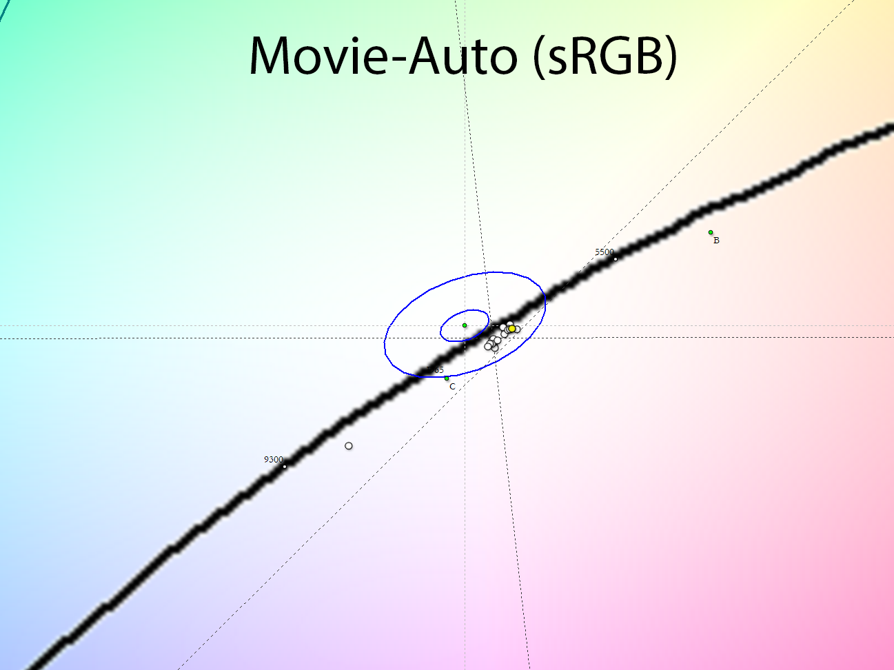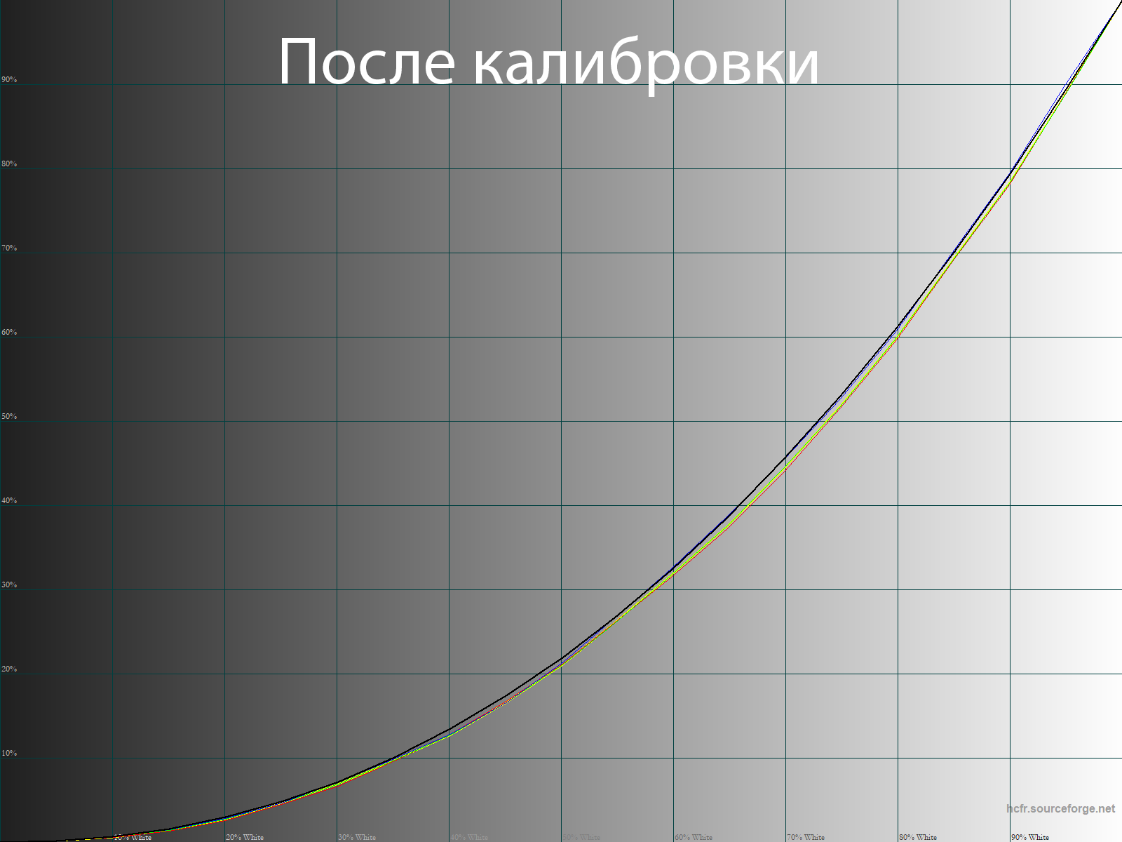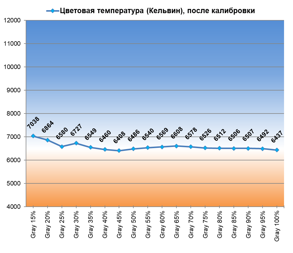 После настройки и калибровки точка белого пришла в абсолютную норму, однако стабильность ЦТ оттенков серого снизилась.