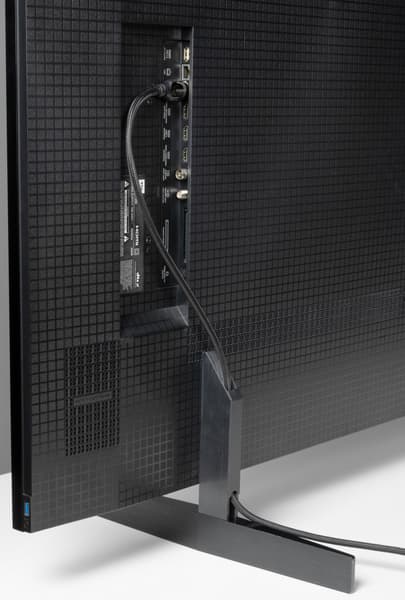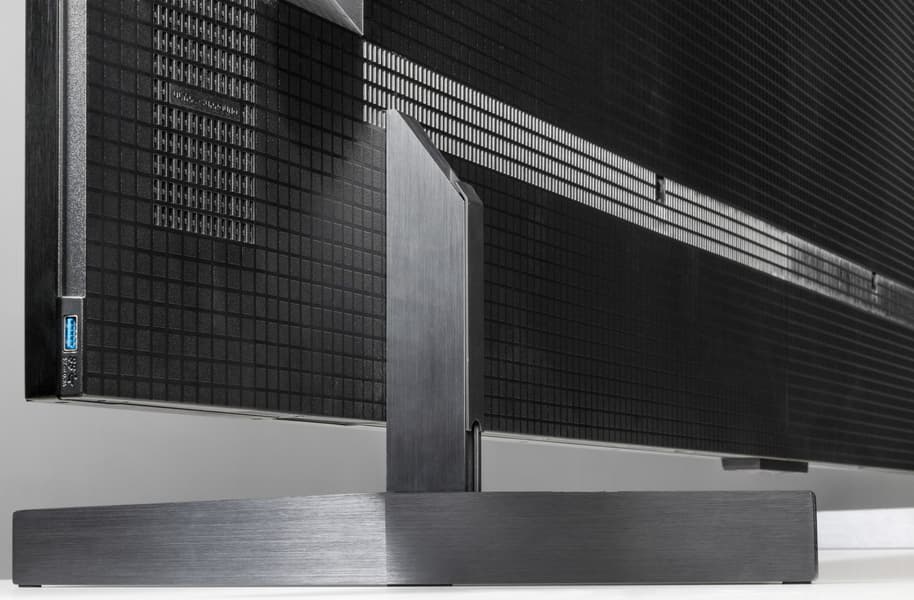 Телевизор выглядит крайне сдержано, но при этом «премиально» и дорого. Дизайнеры поработали над тем, чтобы скрыть всю электронную начинку под один сплошной кожух, без выделенных под интерфейсные разъемы увеличенных в габаритах сегментов.