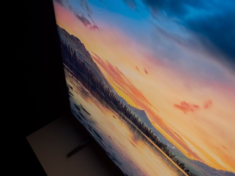 Впрочем, в некоторых случаях проявляется слабый эффект пастеризации на сложных переходах, возникают паразитные оттенки, а белый при просмотре под углом затемняется и выдает нечто похожее на металлический отлив и тоже с паразитным оттенком. Глобально же можем отметить, что по углам обзора используемая в TCL 85X955 матрица показывает прекрасные результаты, особенно для своей диагонали.
