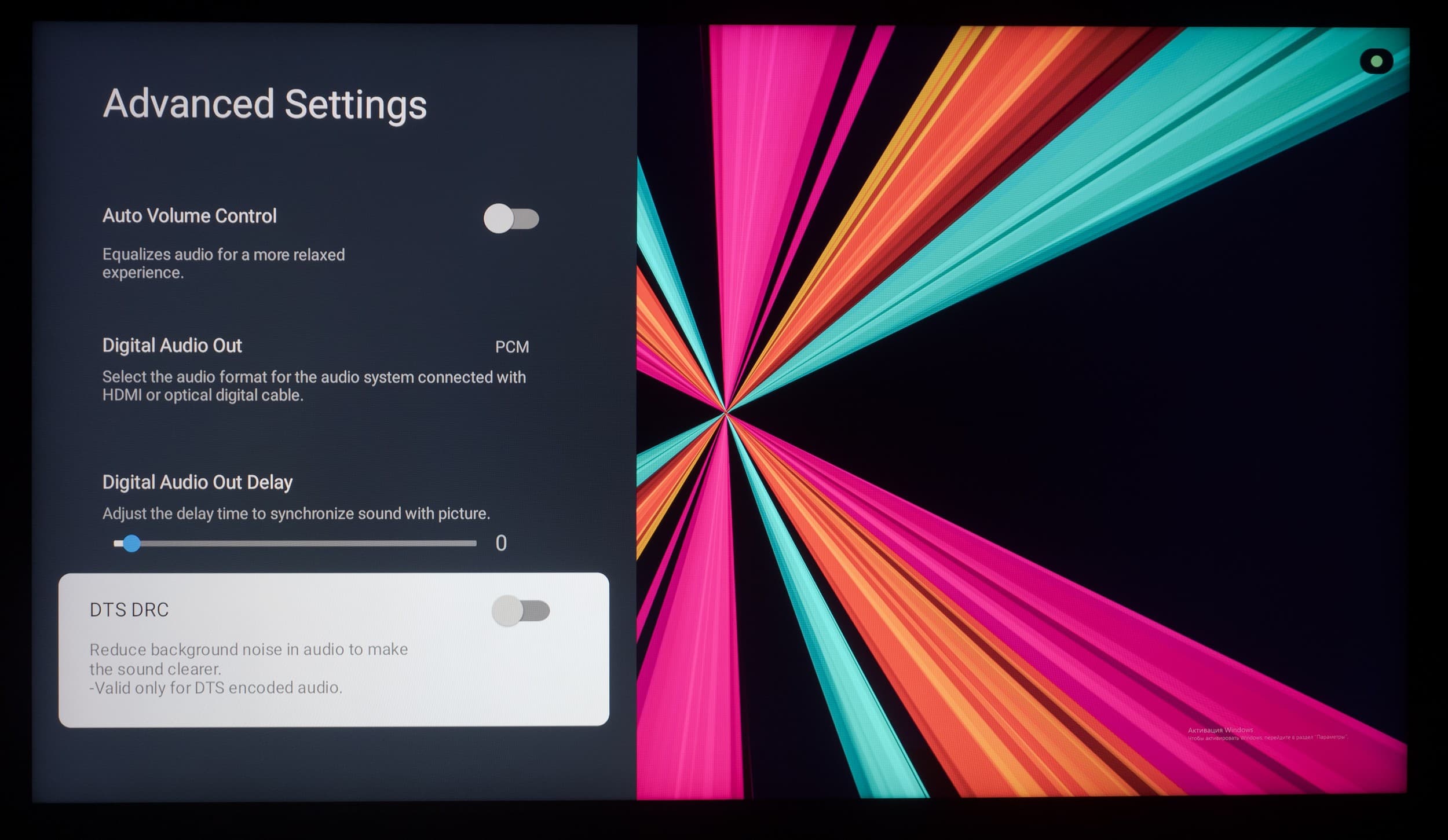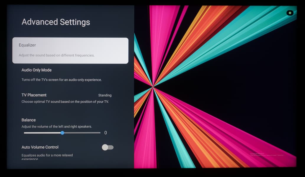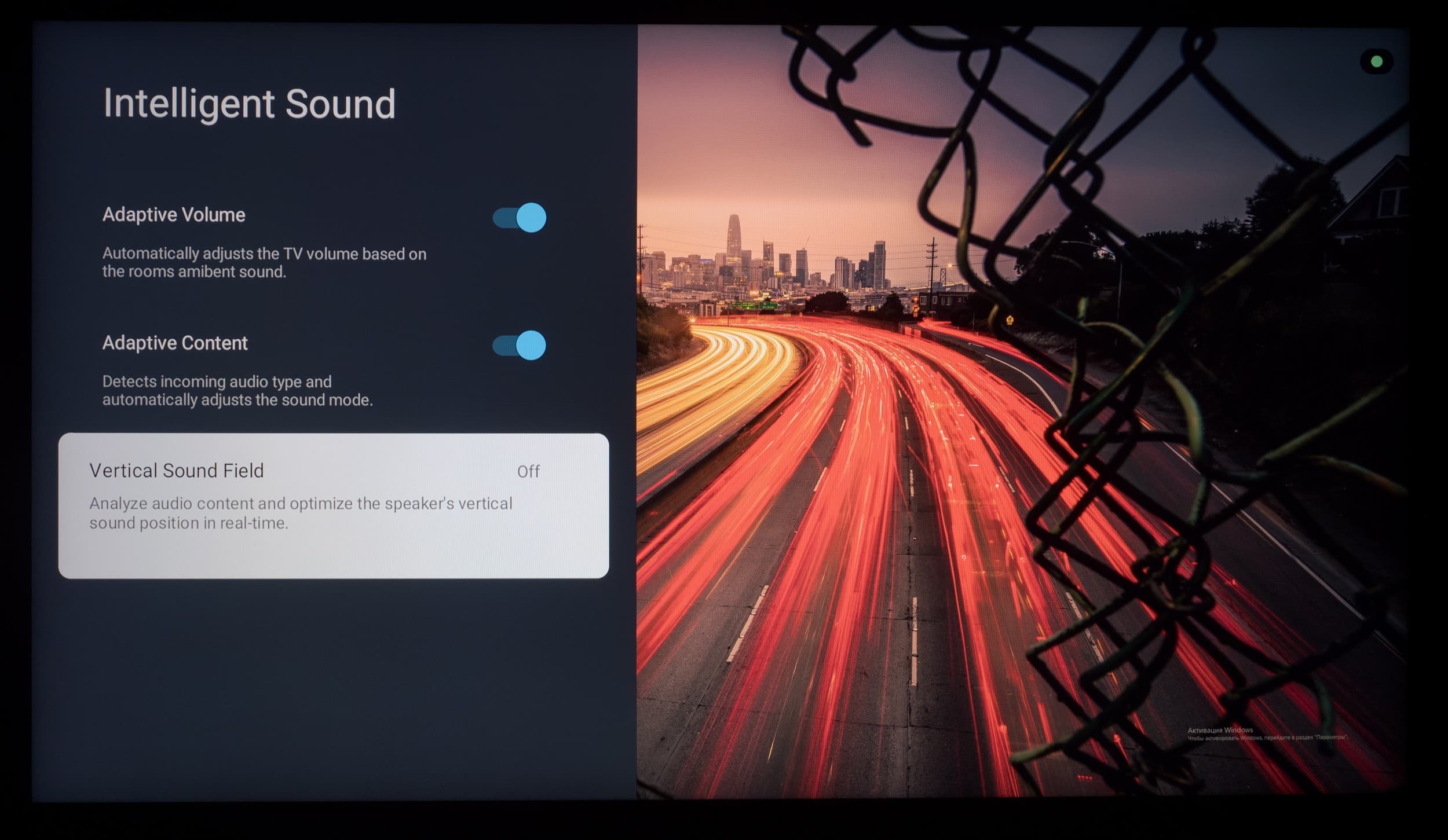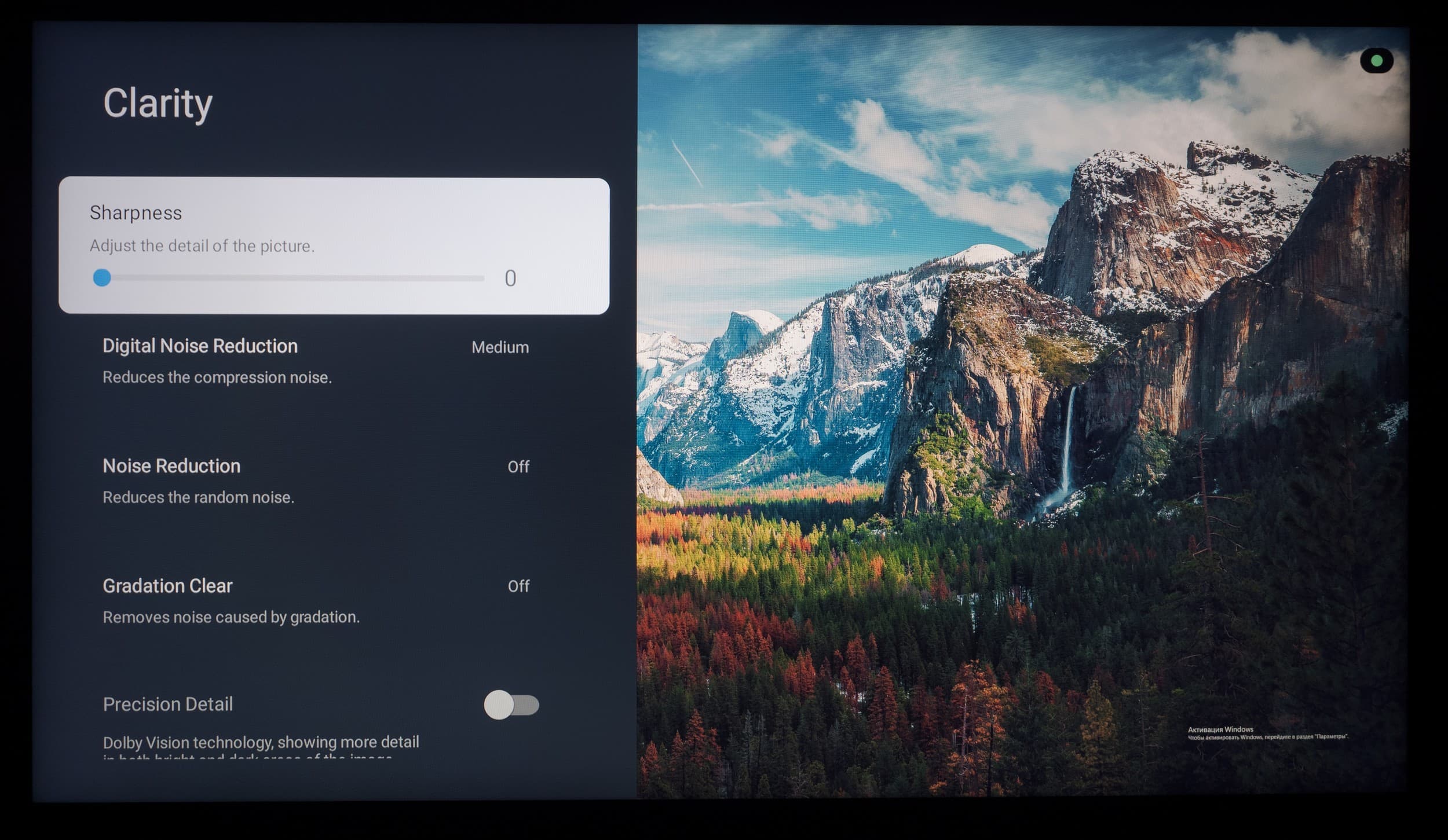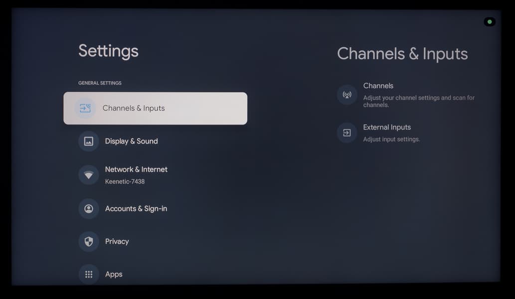 Что касается всех остальных настроек, то из-за использования оболочки Google TV они перебрались на отдельный экран, закрывающий собой воспроизводимый контент. Основной OSD-экран построен по принципам блочной структуры, со сдвигом вправо при наличии дополнительных подразделов.