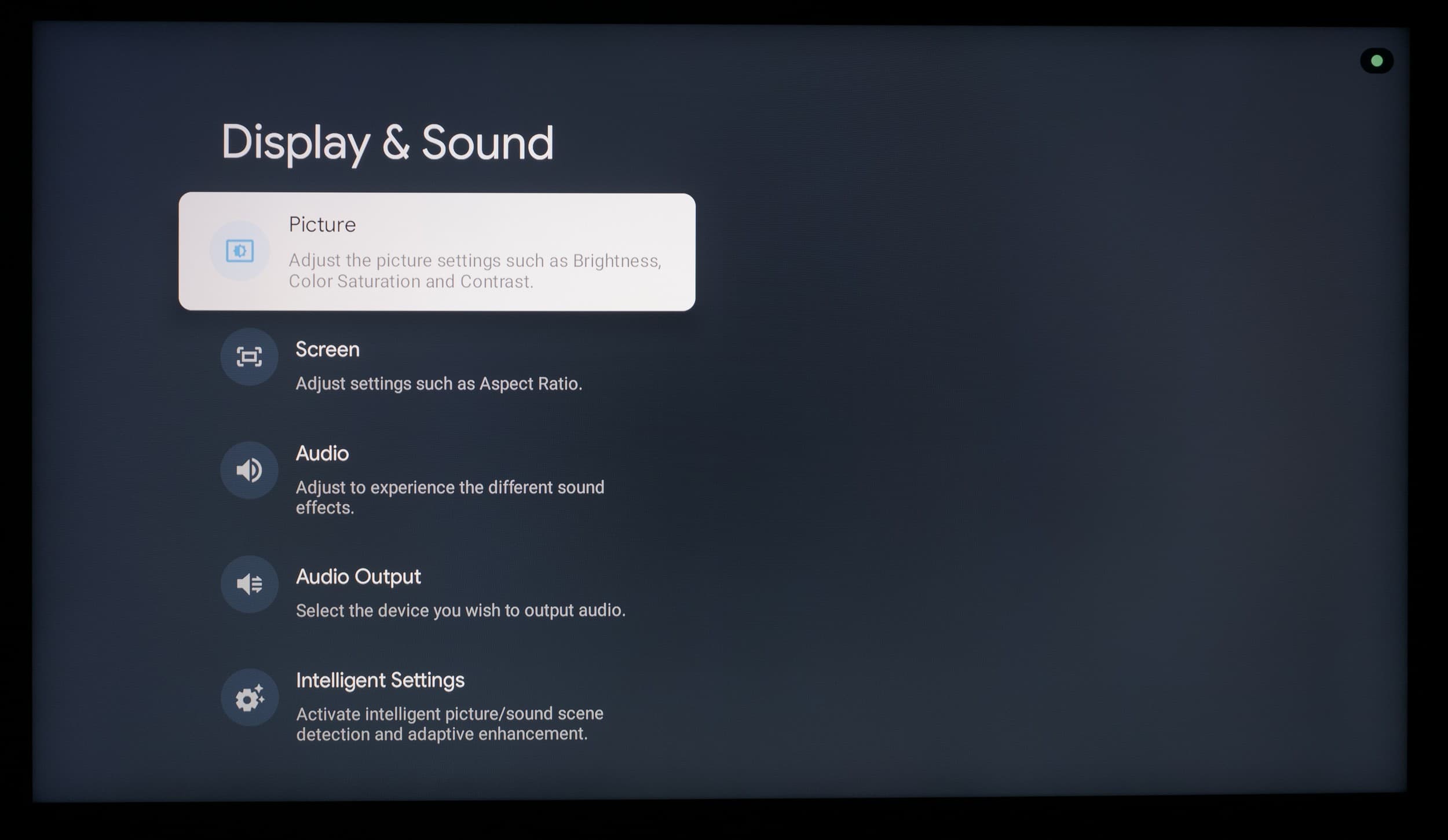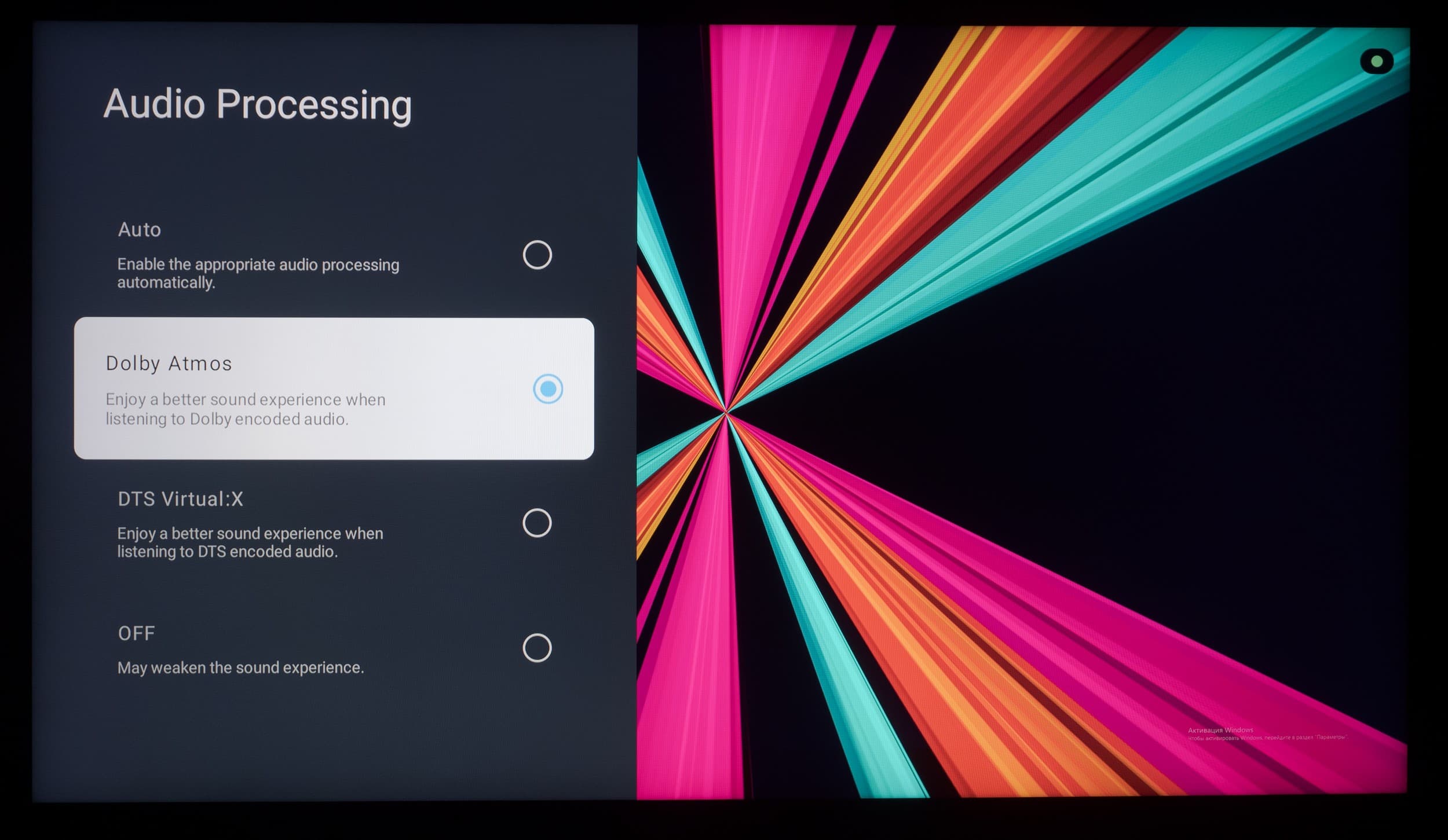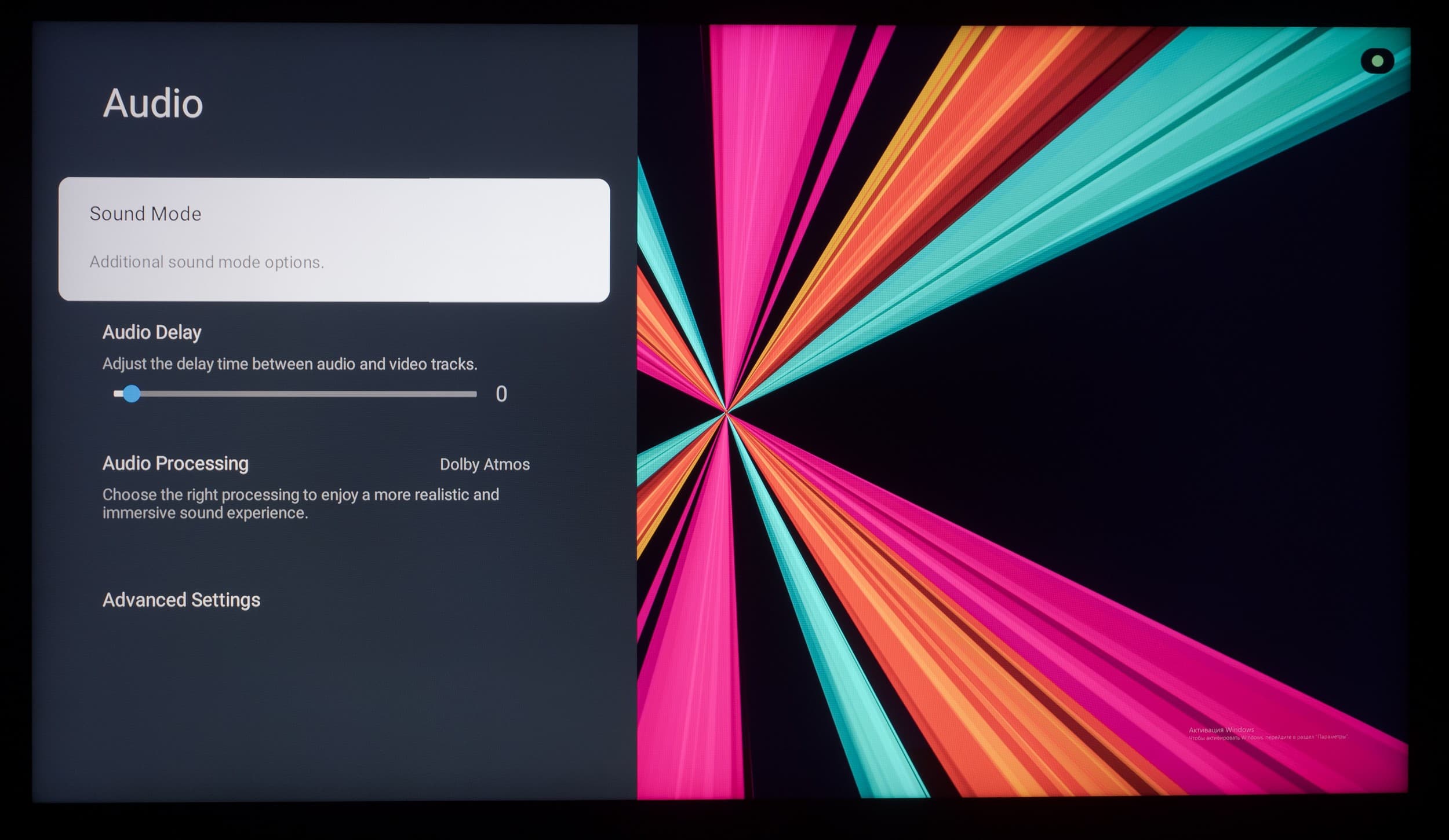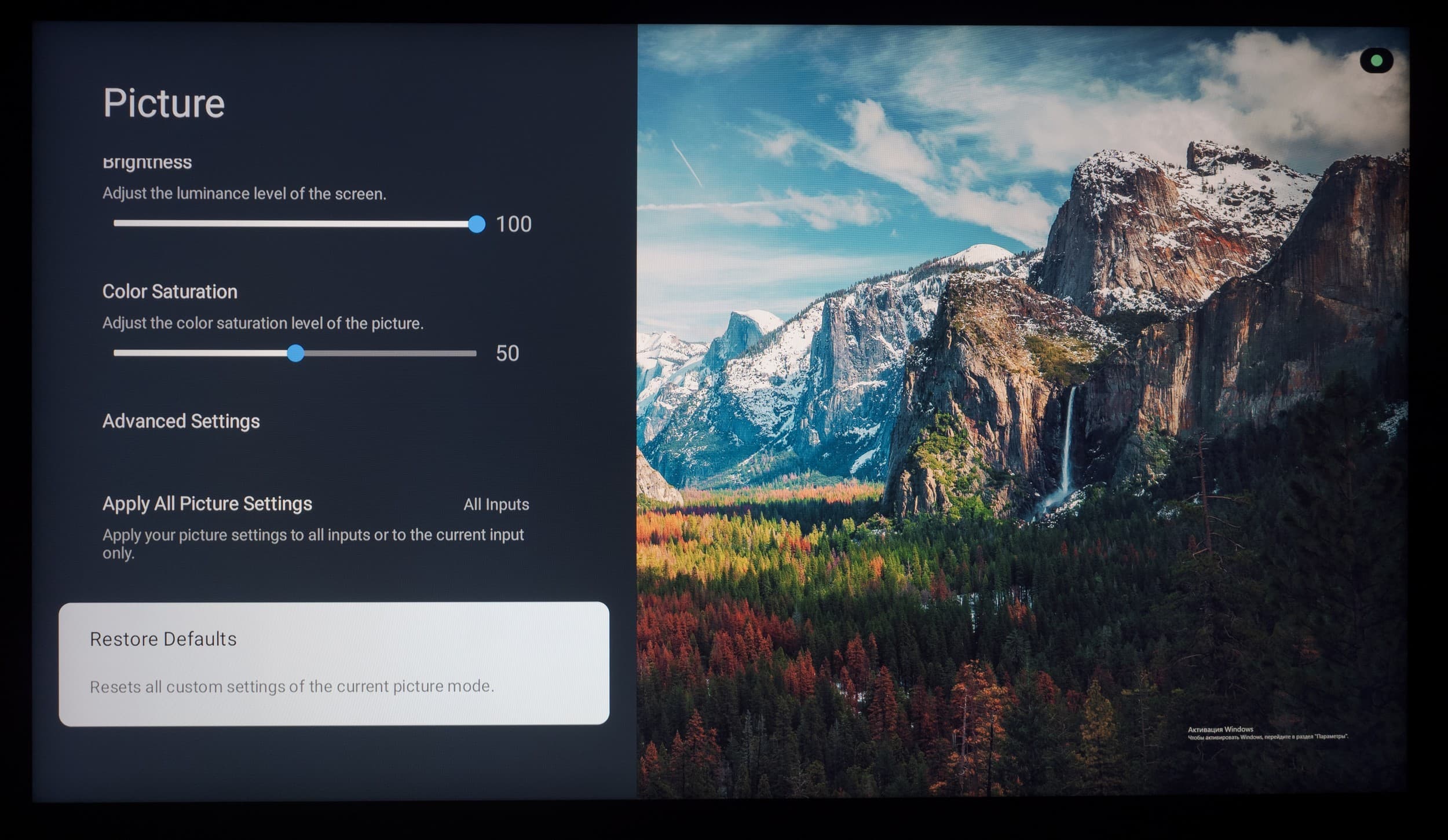 Что касается всех остальных настроек, то из-за использования оболочки Google TV они перебрались на отдельный экран, закрывающий собой воспроизводимый контент. Основной OSD-экран построен по принципам блочной структуры, со сдвигом вправо при наличии дополнительных подразделов.