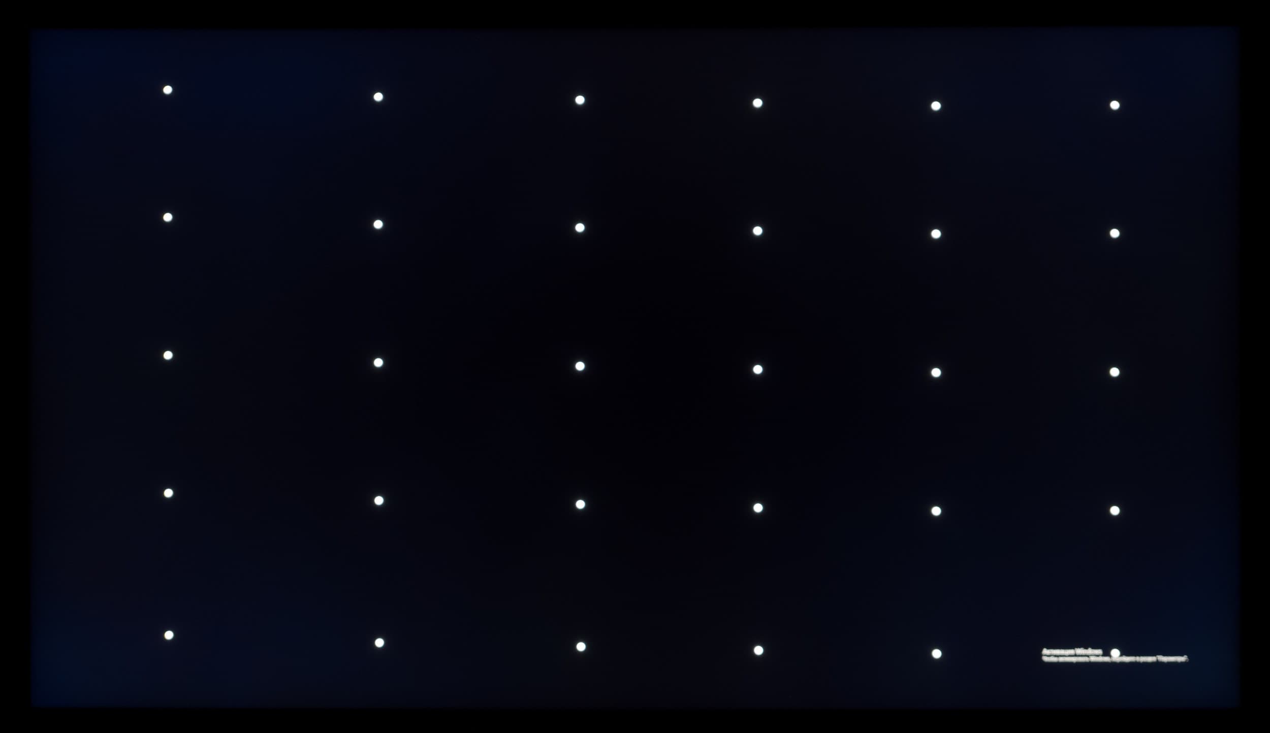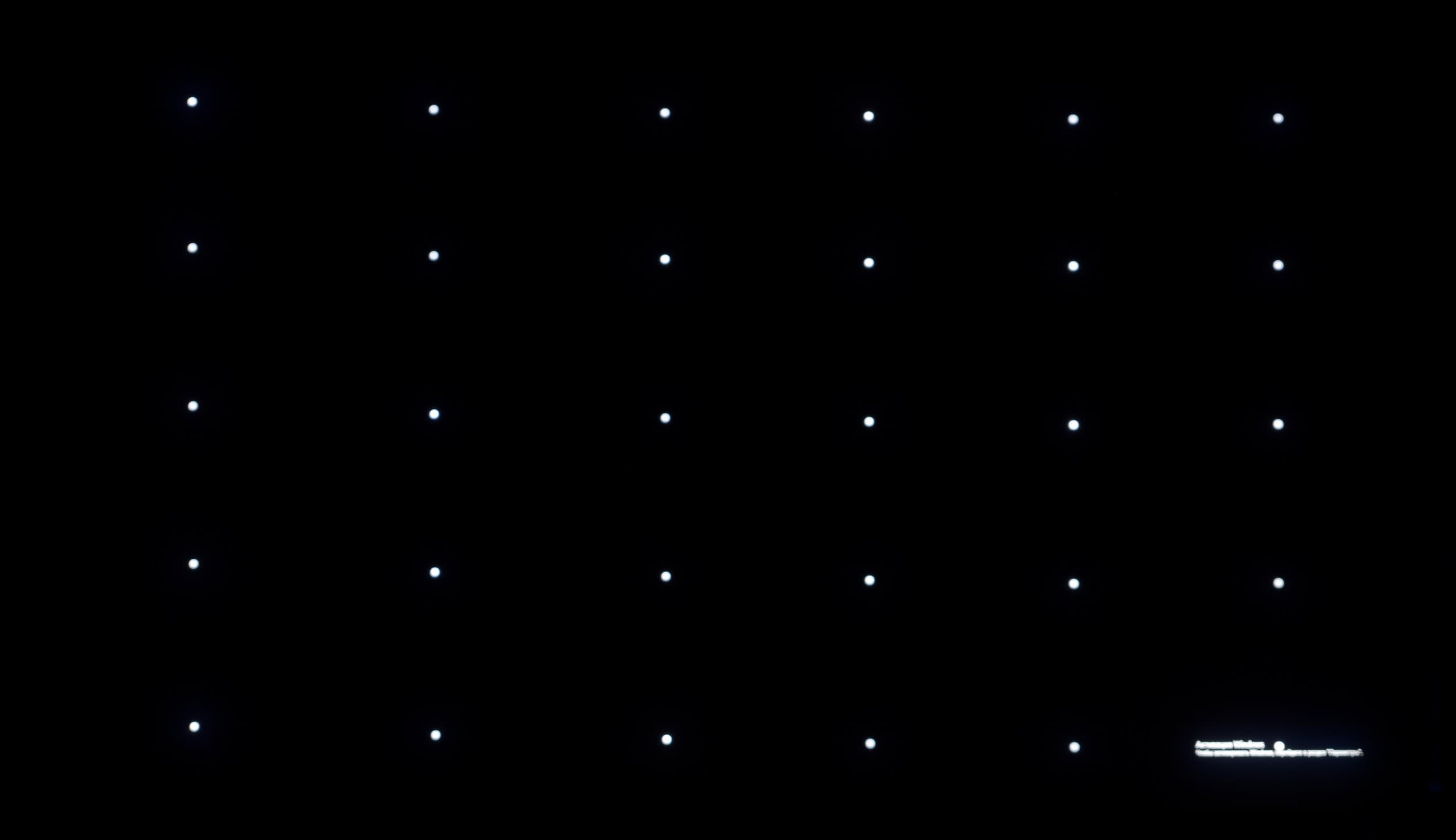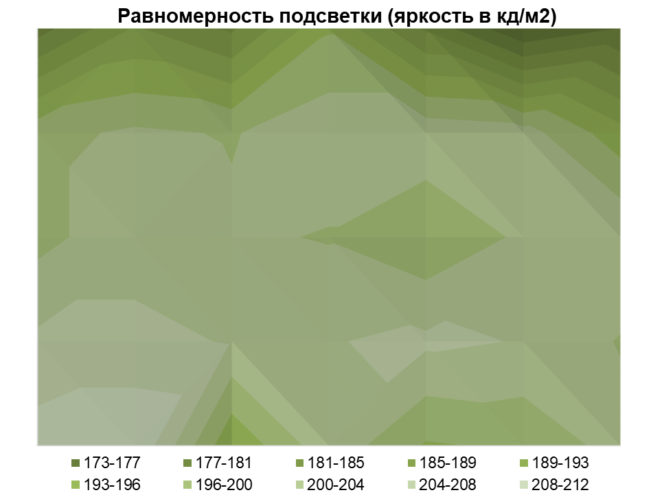 Измерения яркости проводились в 35 точках экрана, расположенных с шагом 1/6 от ширины и высоты экрана. Границы экрана не включены, настройки установлены в значения, обеспечивающие яркость белого поля в 200 нит в центральной части экрана.