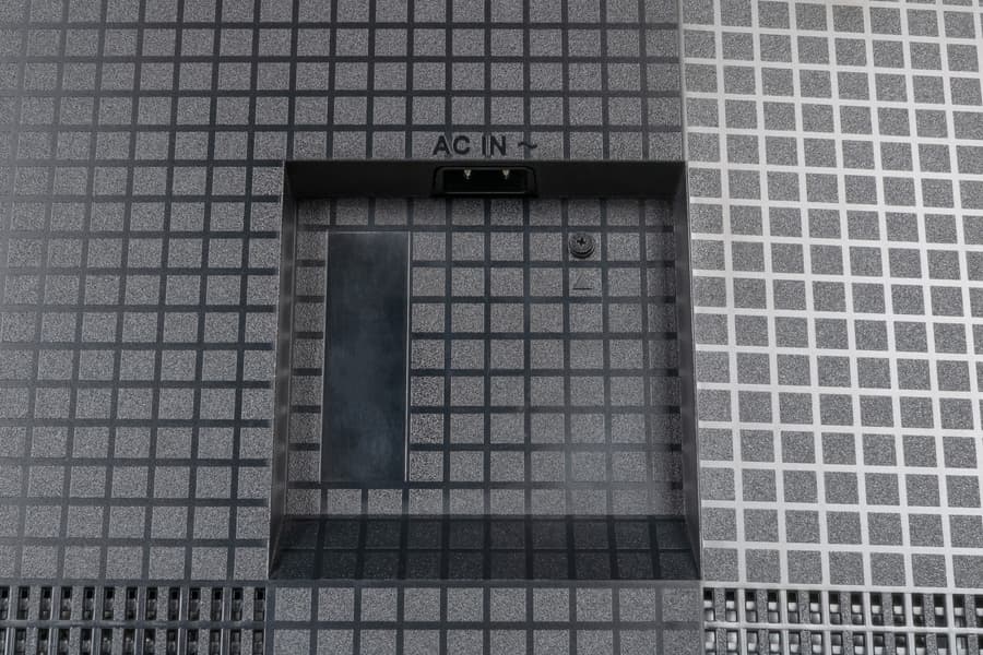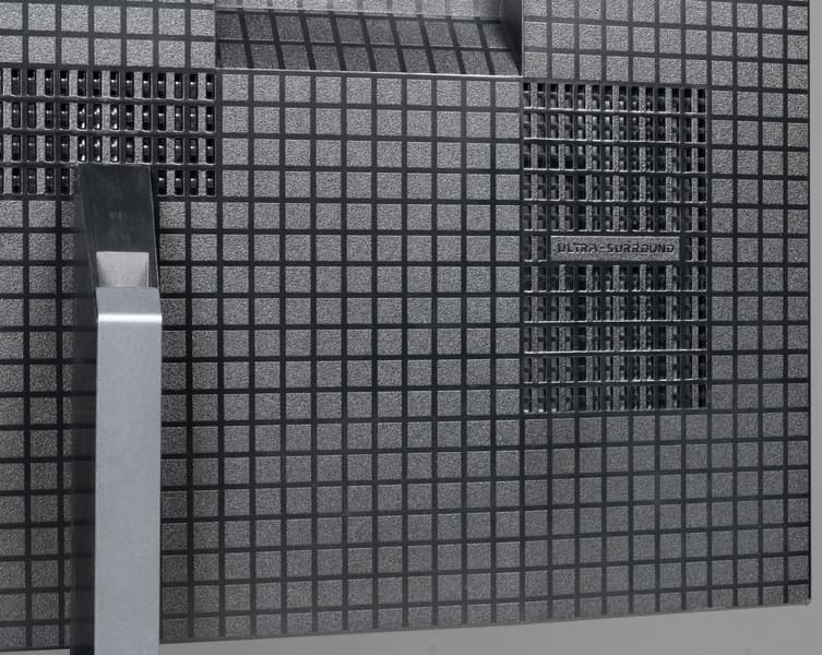 На пластиковом кожухе сзади есть небольшое количество вентиляционных прорезей для лучшего теплоотвода. Судя же по графическому представлению производителя, динамики встроенной акустической системы располагаются прямо за ними.