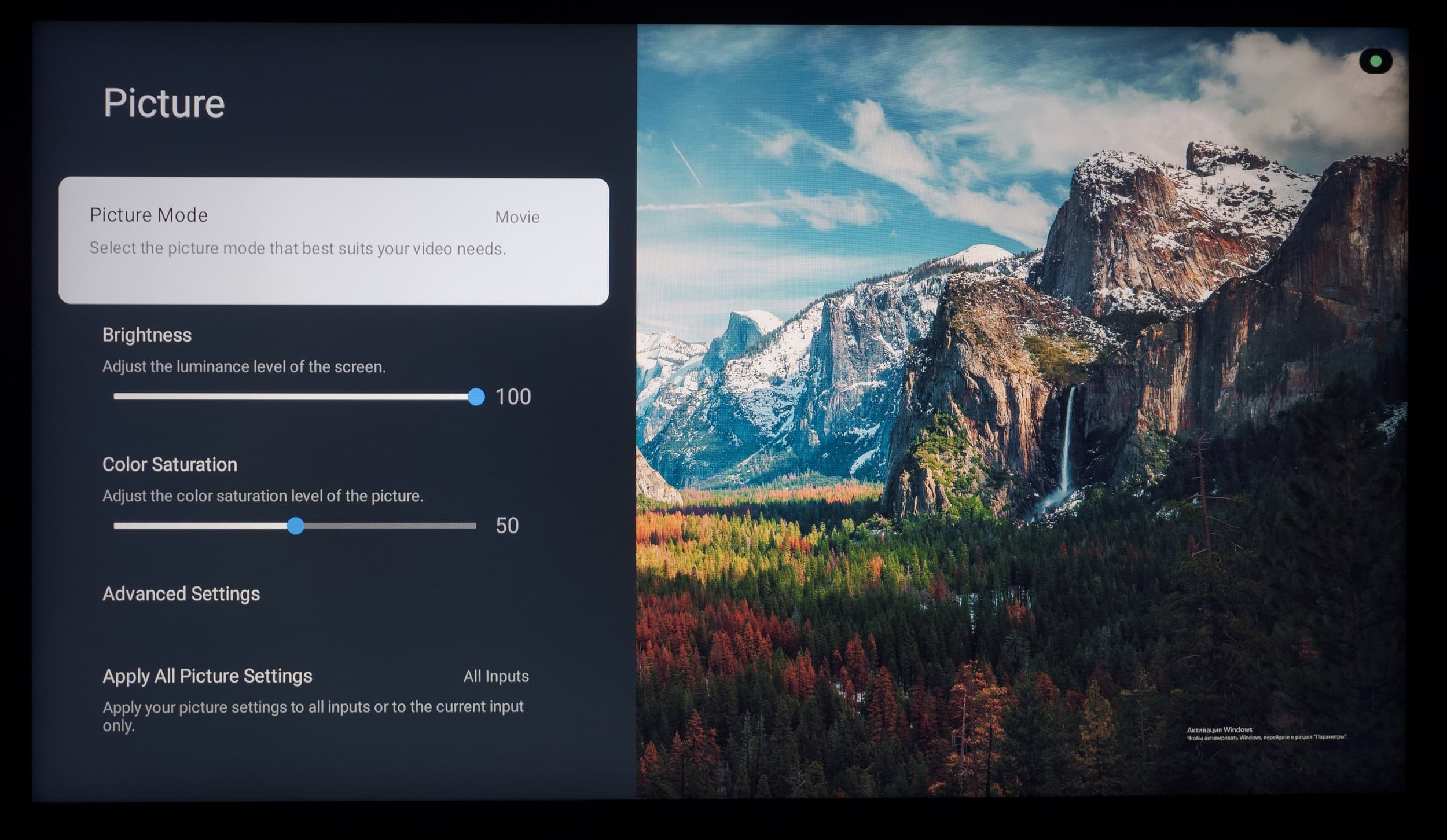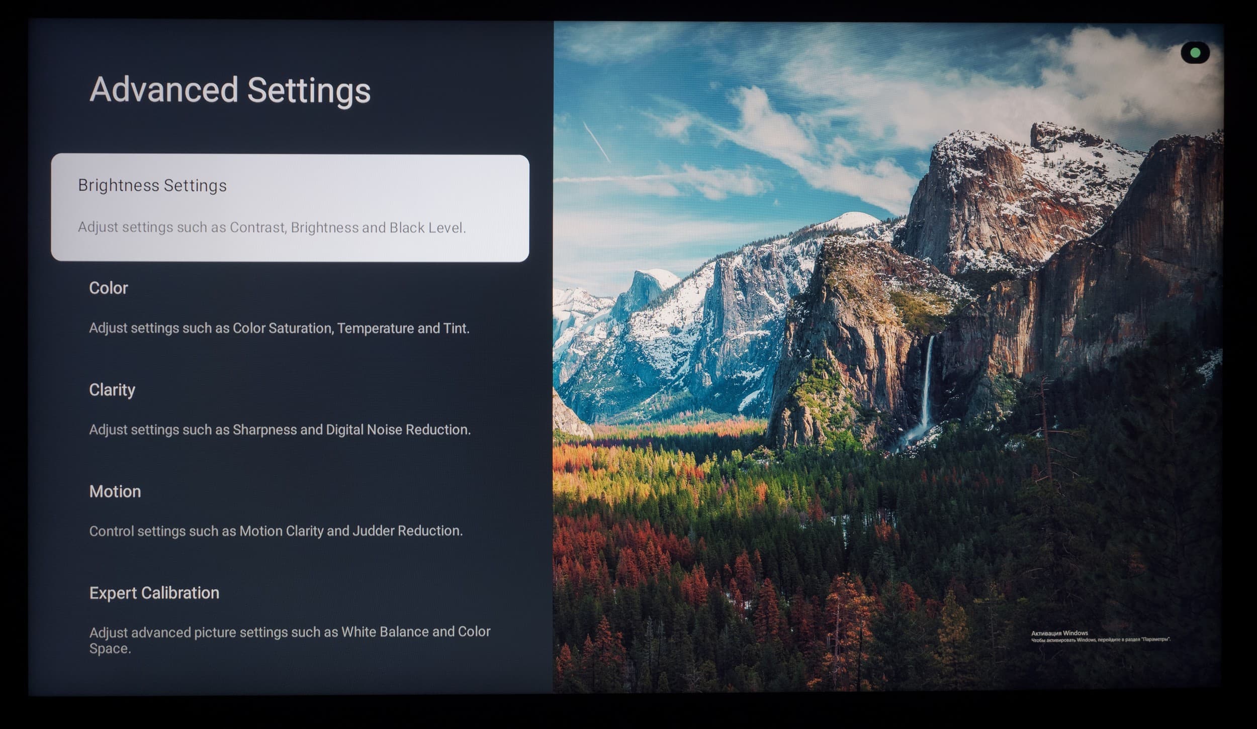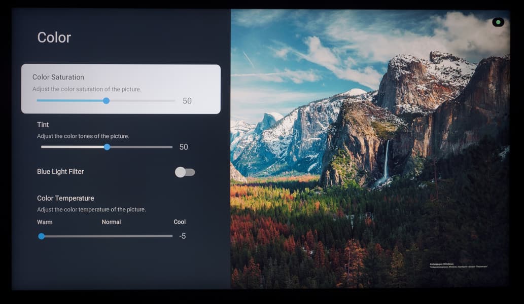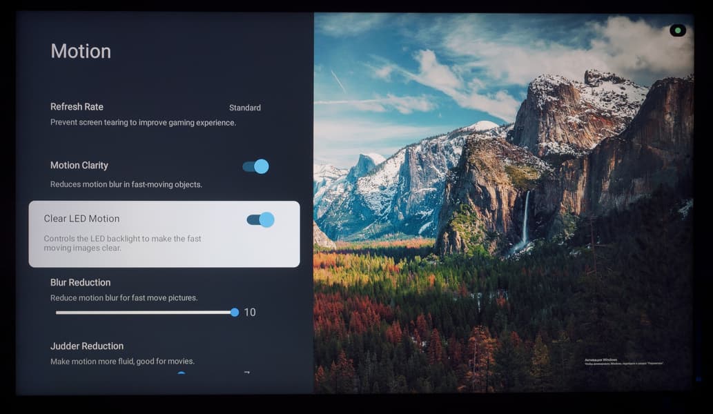 В продолжении темы меню отметим, что настройки изображения сохраняются для всех приложений сразу и для каждого из внешних входов, включая ТВ-тюнер, раздельно, еще плюс настройки для сигнала HDR.