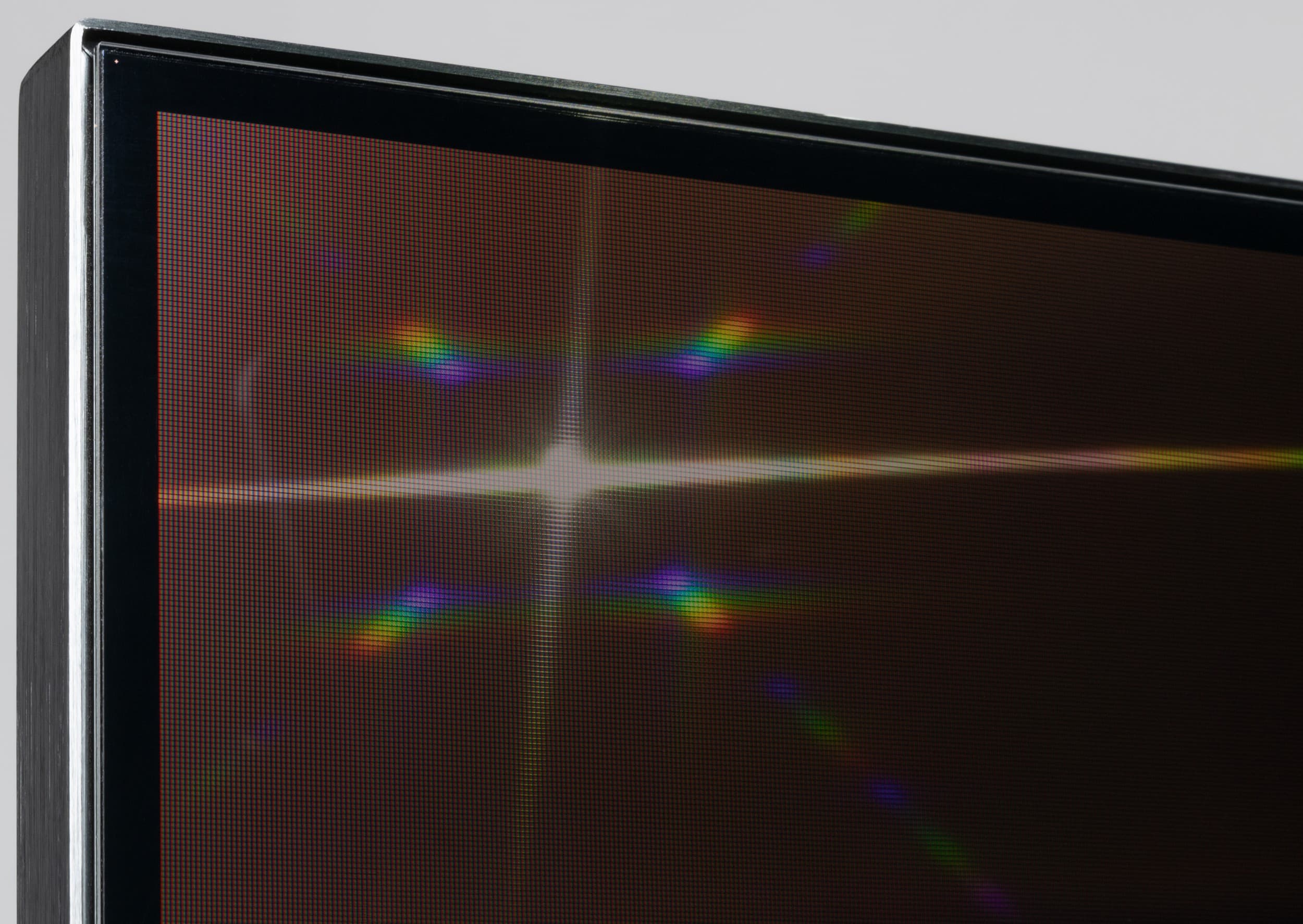 В случае же отклонения взгляда от нормали, при выключенных системах управления локальной подсветкой, можно стать свидетелем классического результата по высветлению черного поля, даже у VA-панели со статическим коэффициентом контрастности близким к 6000:1.