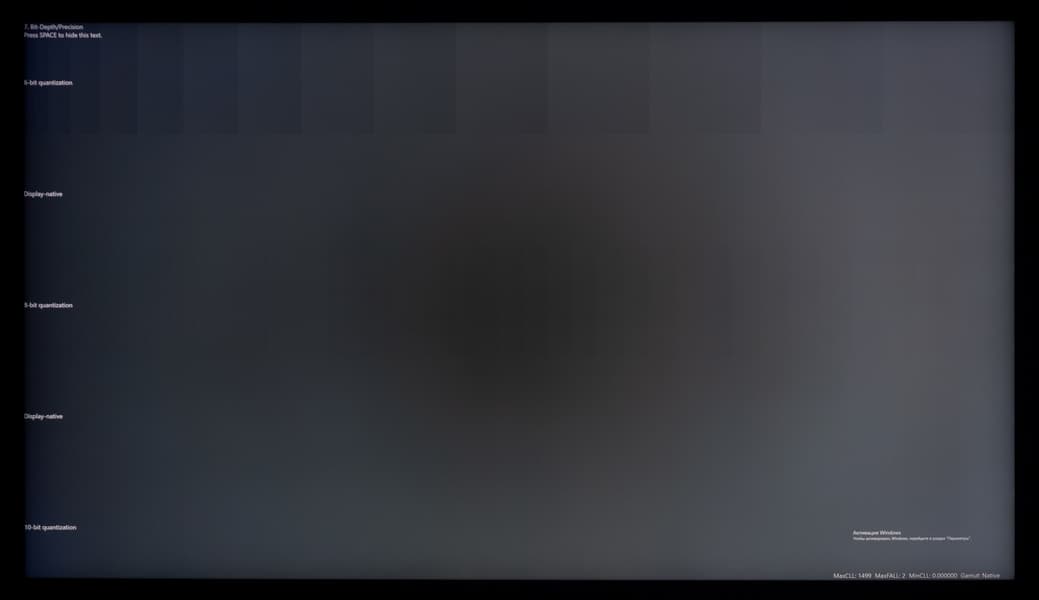 Качественную оценку мы начнем с демонстрации градиентов при выводе изображения в 8-битном и 10-битном режимах (программная эмуляция со стороны ТВ либо GPU в случае подключения к ПК/ноутбуку).
