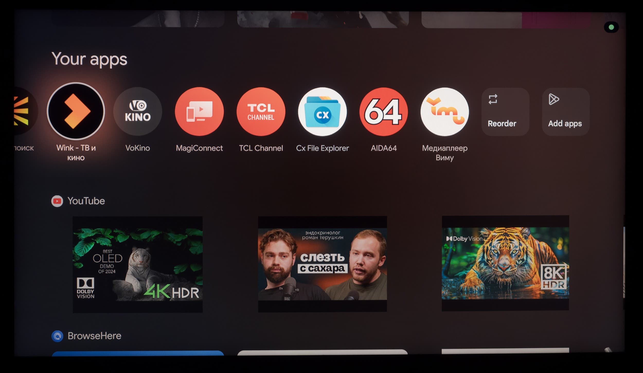 В телевизоре предустановлено достаточное количество приложений, в том числе разработчиков из СНГ, а также часть западного ПО, которое частично растеряло свою актуальность на территории РФ. Есть порядка 4-5 приложений самой TCL, в том числе TCL Channel для доступа к широкой базе каналов IP TV, предлагаемых производителем.