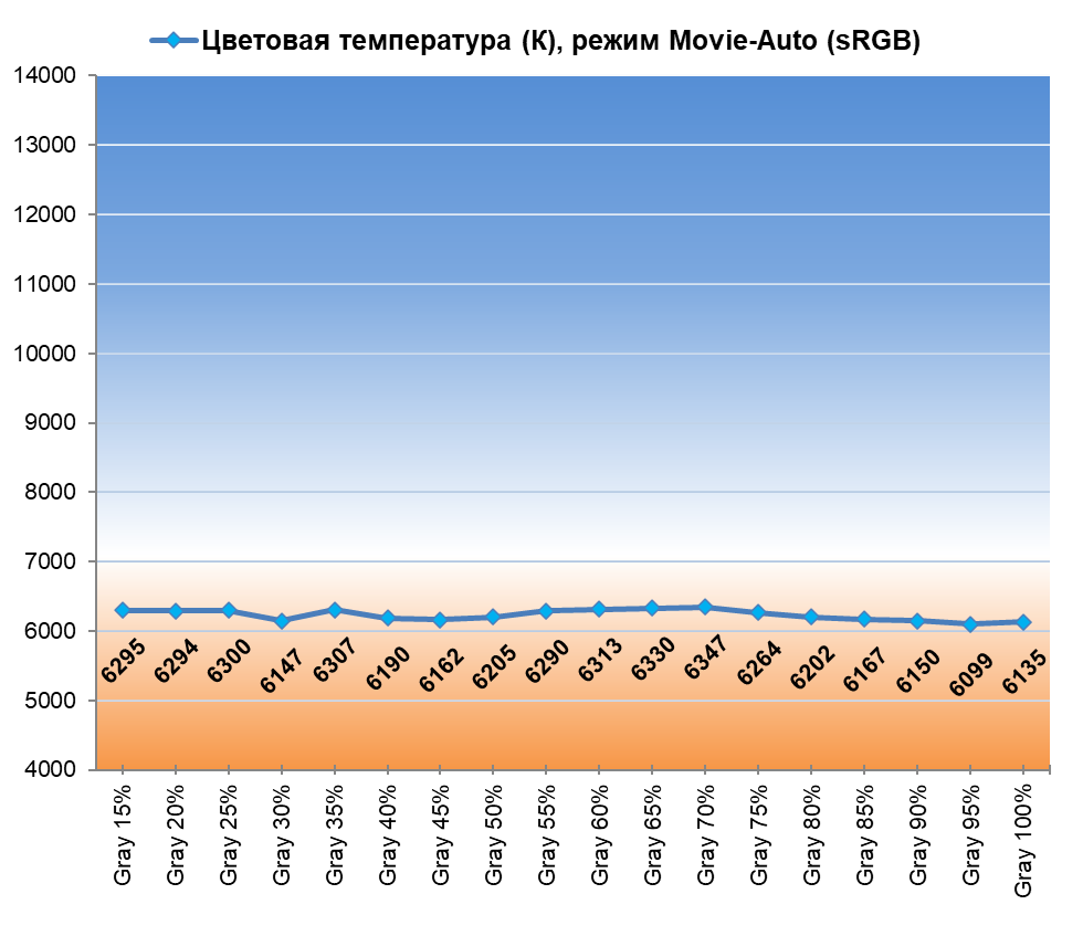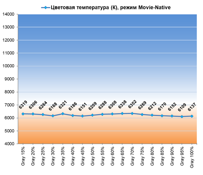 В вопросах же настройки цветовой температуры и баланса серого два режима нас приятно удивили: 6100-6220 К c максимально высокой стабильностью серого клина и отсутствием явных паразитных оттенков. Выставленный по умолчанию режим Low Power отличается классическим «холодным» тоном, а потому от него мы предлагаем отказаться еще на этапе первой настройки ТВ — слегка повышенная максимальная яркость точно того не стоит.
