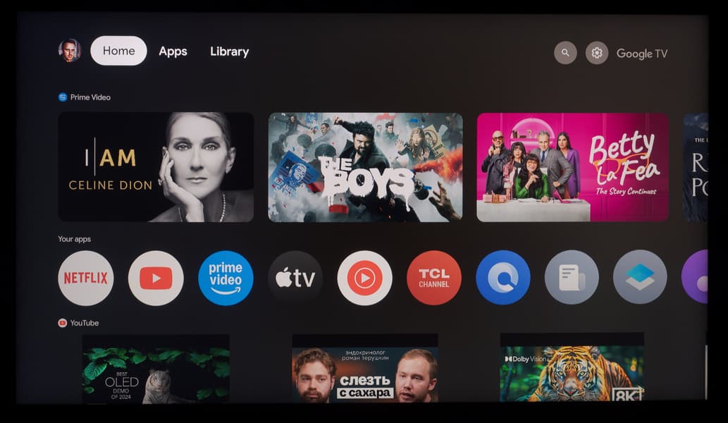 Первоначальную настройку системы можно провести с помощью входа в свой Google-аккаунт прямо с телефона, что позволяет сэкономить львиную долю времени. Главный экран Google TV многим хорошо знаком, поскольку на 95% соответствует крайне популярной программной оболочке Android TV.