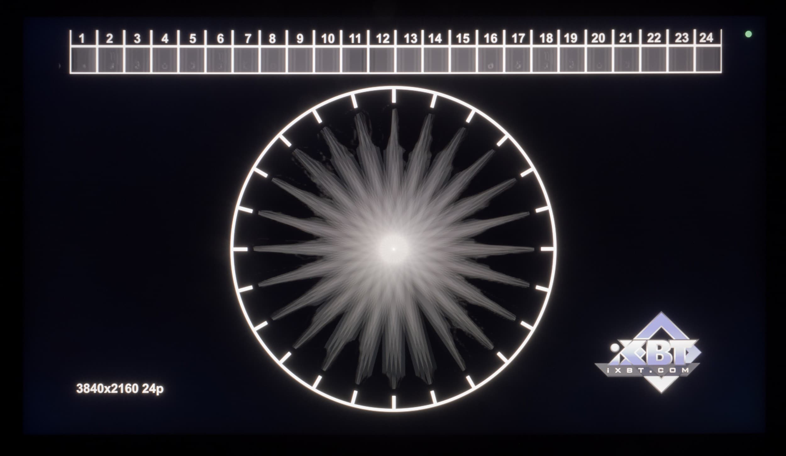 На белом поле видна характерная неравномерность подсветки, свойственная многим крупным ТВ, особенно со сложной подсветкой Mini-LED. Но тут следует отметить, что такая равномерность получена при съемке белого фона спустя несколько минут стабилизации яркости экрана. В первом случае результат получен без активной локальной подсветки, а во втором — вместе с ней.