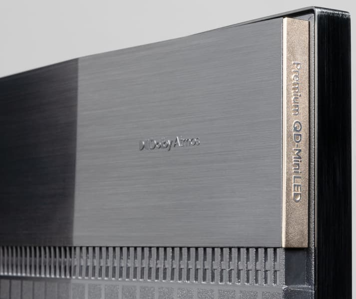 На корпусе устройства не один раз можно найти упоминание, что перед вами премиальный ТВ с подсветкой QD-Mini-LED.