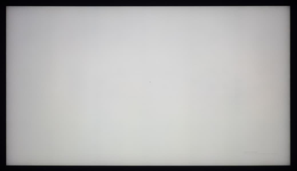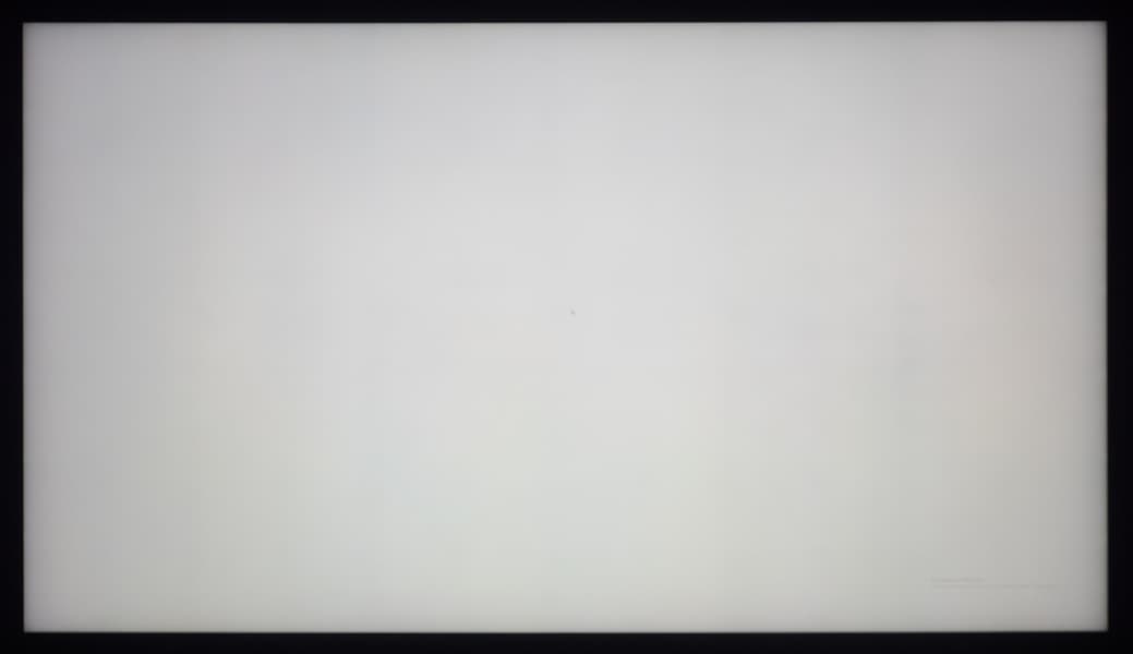 В первом случае мы видим характерное высветление черного по краям панели, но такова ситуация лишь в случае строго перпендикулярного взгляда. При его смещении в ту или стороны самая темная зона будет визуально смещаться. При этом общую равномерность подсветки мы можем оценить, как высокую. Отсутствуют явные дефекты, однородность — высокая.