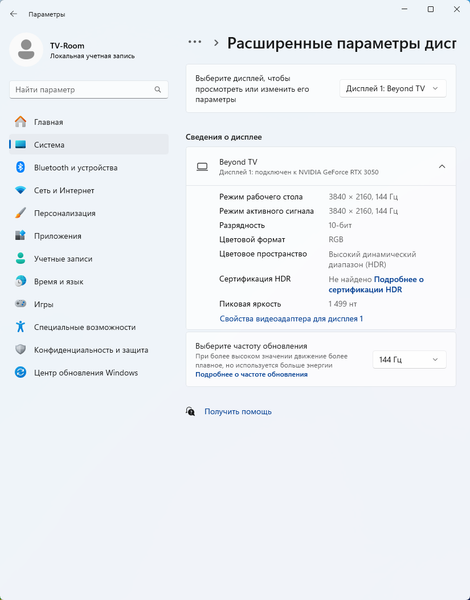 Теперь про скорость матрицы. Для рассматриваемого решения производитель решил не указывать реальную скорость отклика и отметил лишь максимальную частоту обновления, которая находится на уровне 144 Гц при выводе с различных источников сигнала и видеокарт, в том числе с GPU Nvidia. В нашем случае использовалась карта Nvidia GeForce RTX 3080 FE, и 144 Гц были спокойно получены.