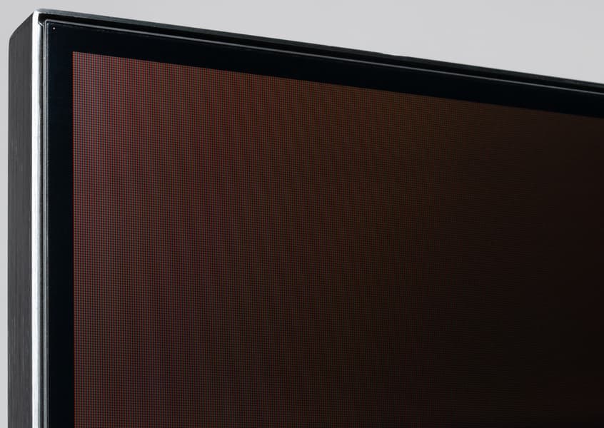 В качестве внешней поверхности матрицы используется полуглянцевое покрытие, обладающее при этом низким коэффициентом отражения, что говорит о достаточно высоких антибликовых свойствах. При этом с завода экран ТВ дополнительно защищен транспортировочной пленкой, которую необходимо снять.
