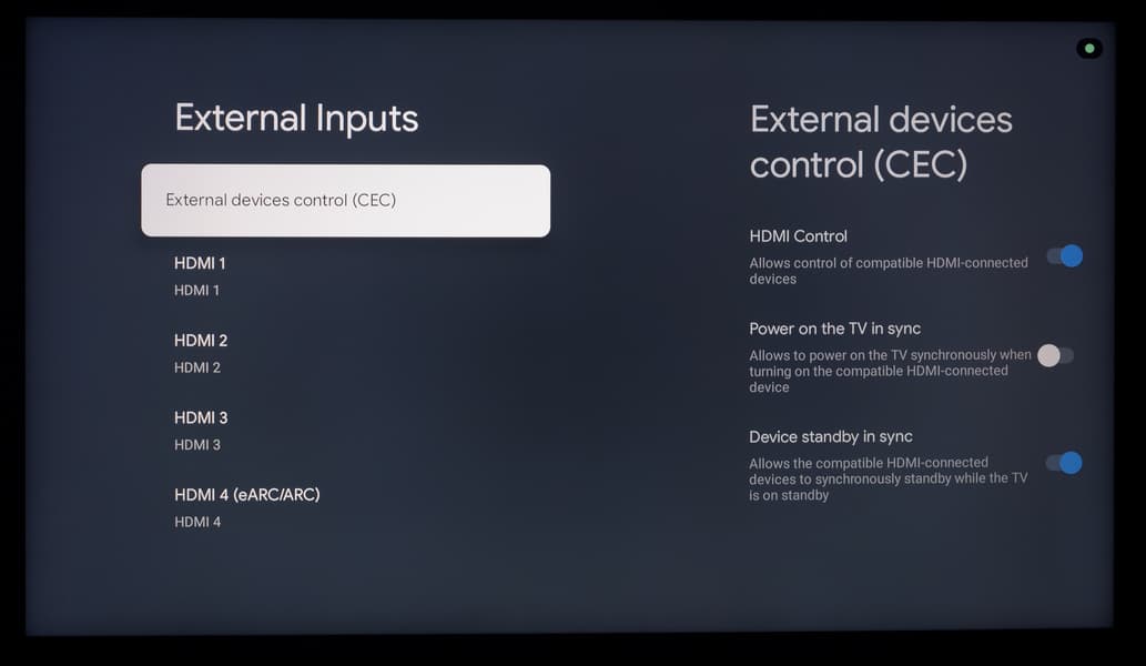 У телевизора есть поддержка управления по HDMI — функция HDMI CEC. В нашем случае она прекрасно работала с ТВ-приставкой Xiaomi Mi Box S и ее стандартным пультом ДУ. Можно и, наоборот, пультом самого ТВ активировать, управлять и выключать приставку.
