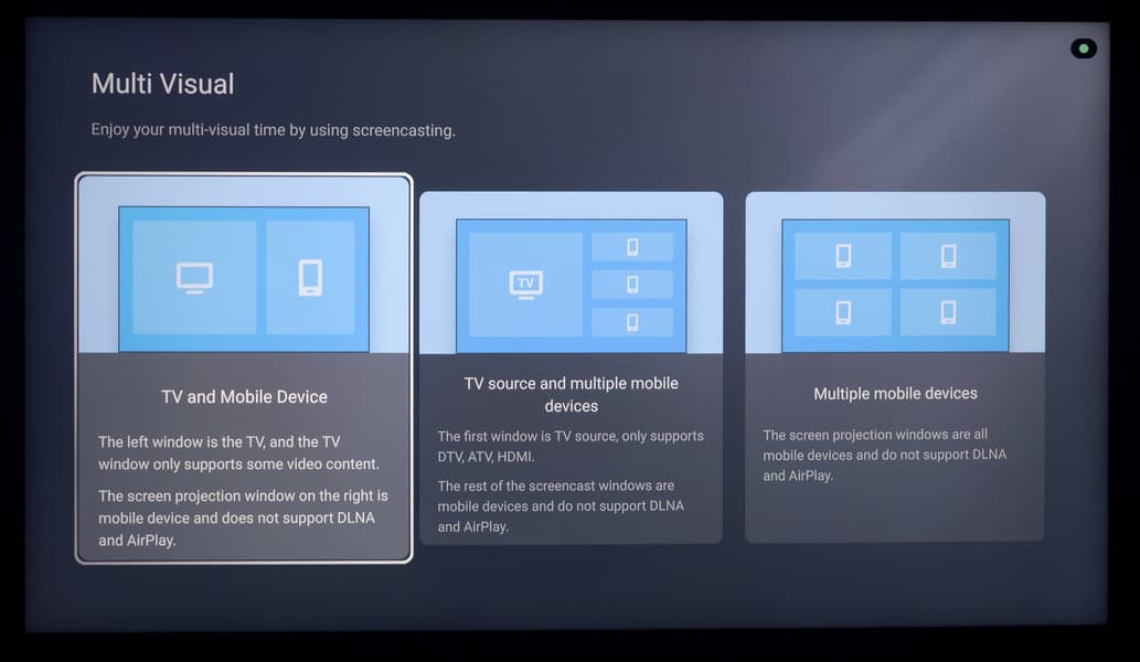 Кроме того телевизор поддерживает работу по стандарту Apple AirPlay 2 при использовании соответствующей техники «яблочного» бренда — такое соединение гораздо стабильней и комфортней, чем в случае использования Android-устройств (но Chromecast, конечно, тоже поддерживается). Также доступны варианты использования экрана ТВ с одним мобильным устройством и 3-4, как с выводом дополнительного изображения из среды Google TV, так и без него.